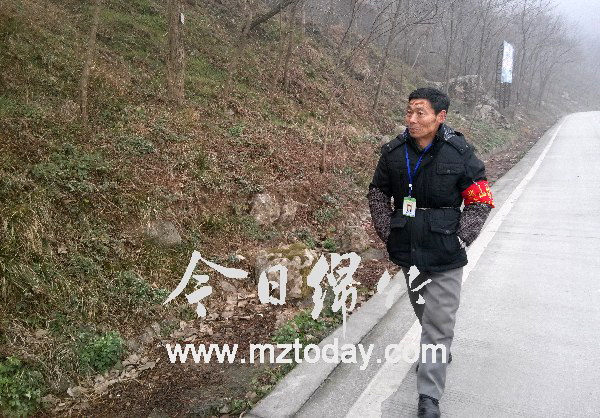 2月11日上午10时许,大雪纷纷扬扬下个不停,道路两旁的林木也在寒风中瑟瑟发抖。风雪中,记者看见杨述刚的身影出现在通往山间的道路上。左手套着红色的护林员袖套,背上背着弯刀,这是老杨每天巡山的装备。由于常年风吹日晒,他的脸上布满了岁月刻下的深深痕迹。老杨一边走,一边四处张望,偶尔遇到吸烟的进山村民和游人,老杨总会上前耐心劝阻。 “下雪也要巡山护林吗?”看着老杨满是冻伤的耳朵,记者忍不住问道。”老杨说,护林员不仅要防森林火灾,还要防林木盗采,所以不管刮风下雨,他每天都坚持巡山! 记者随着老杨走进狮子崖林区,雨雪后,脚下山路崎岖湿滑,大大小小的石头散落在四周,可是已近60的老杨却如履平地,健步如飞。记者刚小心翼翼绕过一块巨石,抬头间老杨已经走出了老远。每天坚持巡山护林,老杨早就用脚测绘出了自己管辖林区的地图。哪里有坟头、哪里有野菜、哪处是用柴林、哪里是灌丛,他都熟悉如自己家里的摆设一般。森林防火责任区划分到每一家后,老杨脑海中的地图又细分了区域,哪一片林子,那一颗树木属于哪一家的责任区,他一眼就能看得出来。 有人进林区就得劝阻,有烟就得灭,这是老杨多年来总结出的经验,如今他是见不得林区有半点火星。如果老远看见管护区有烟火,老杨就会扯着大嗓门通知责任人马上消除隐患。今年暖冬,天气干燥,护林防火的任务更加艰巨。游人多时,老杨夜里也会打上电筒到林区转一转,亏得前两天的雨雪天气让老杨总算睡上了两天安稳觉。 老杨热爱这份与林为伴的工作,自从带上鲜红的护林员袖套后,他的足迹遍布全村每一处角落,向村民宣传林业相关政策法规,巡查森林火灾隐患,制止滥砍滥伐和毁林开荒等。每天清早不到8点出门,沿着林区走上几个来回,下午4点左右才能回到护林站吃上一口午饭。尽管工作辛劳,可老杨却说,他就像爱自己的孩子一样,热爱林区里的一草一木。自己的心愿就是在有生之年守护好家乡这一片绿。