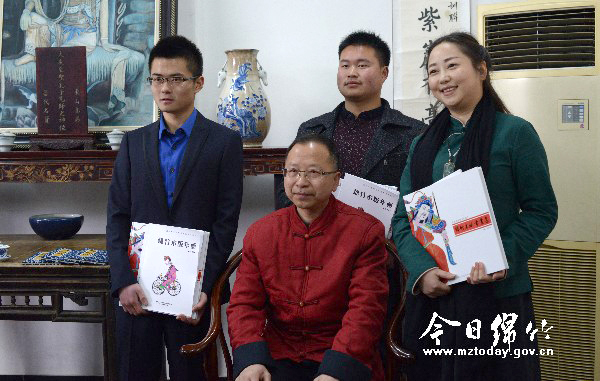 本刊消息 3月8日,孝德镇年画村年画街坊“胡美人新年画艺术馆”内,一场传统的拜师仪式在这里举行。当天,四川省非遗保护中心有关负责人和来自德阳各地的书画界名流,共同见证了这一绵竹年画界喜事。 上午10时许,在胡美人新年画艺术馆内,绵竹年画大师胡光葵端端地坐在木椅上,接过3个徒弟恭恭敬敬献上的拜师帖,喝过3名徒弟献上的拜师茶后,胡光葵分别为每个徒弟赠送了一套绵竹年画相关书籍,并对徒弟们提出殷切期望:“希望你们认真学习绵竹年画的精髓,将绵竹年画传承和发扬光大。” 2006年,绵竹木板年画被国务院、文化部命名为首批国家级非物质文化遗产项目。有人说,年画成就了绵竹。也有人说,是绵竹创造了属于四川的年画。 胡光葵现为绵竹年画博物馆馆长。在绵竹年画的创新、发展中独树一帜。因擅长画美人,人称“胡美人”。“胡美人”是胡光葵的年画招牌,其笔下的美人,无论是古装仕女,还是贺岁美童,仪态风貌都融入了年画的元素,因此而获得了“胡美人”的雅号。后来,胡光葵索性把“胡美人”注册成了新派年画识别标志。“胡美人”的美名,除了得益于胡光葵对传统年画艺术的深刻理解外,他精湛的国画水平更为其画风打下了良好的基础。托盏献寿的古装美人、开门纳福的邻家女孩、迎春同乐的金童玉女、《佛世界》的观音、晚清民国的龙车丽人……都成为是“胡美人”笔下的一个个栩栩如生、独具特色的美人形象。 胡光葵说,绵竹年画是中华民族优秀传统文化中的一朵奇葩,里面包含了诗歌、绘画等各种丰富的内容。作为一名非物质文化传人,他有责任和义务将绵竹年画传承下去。胡光葵说,“他新收的3名徒弟都有学习绵竹年画的强烈愿望,也多次到他的馆内请教。他们的诚心和毅力打动了自己。自己愿意将其所学、所悟传授给徒弟们,通过徒弟将绵竹年画发扬光大。” 张娟、刘卜源、李城是胡光葵此次收的3个徒弟。张娟从小喜欢绘画,喜欢临摹,做过老师的她在做茶道过程中认识了胡光葵。经过几次接触,张娟喜欢上了绵竹年画,于是决定拜师胡光葵,专心学习绵竹年画,将绵竹年画发扬光大。 今年21岁的刘卜源是成都人,在绵竹读书时接触到了绵竹年画,遂产生了兴趣,后经人引荐认识了胡光葵。刘卜源说,“我希望好好学习绵竹年画,将绵竹年画的影响力不断扩大,让更多人认识了解绵竹年画。”