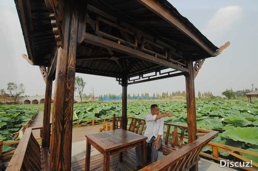 孝德镇副镇长严勇告诉记者,这里正在打造的景区是商家在年画村投资上亿元打造的融观光、休闲、健身于一体的“荷塘月色”特色精品景区,年初就开始着手打造,如今年画东湖、健身绿道等都已基本建好,湖边的年画酒店也即将完工。整个景区已初具规模,盛夏时节,吸引了不少客人来此消夏。如今,景区建设正紧锣密鼓进行,大家在为即将举行的旅发会做准备。