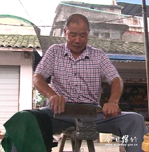 “磨剪子,戗菜刀……”对于这样的吆喝声,生活在上世纪八九十年代的人并不陌生,那时候大街上经常会见到扛着板凳、拿着磨刀石吆喝的人。如今,随着社会的发展,这种磨刀匠已经很少见了,但在我市玉泉镇的综合市场里,有一位66岁的磨刀匠——杨三荣,依然在坚守这个即将消失的行业。 潜心学手艺 练就好“功夫” 杨师傅家住新市镇蒲泉村,年轻时,身强力壮的他在建筑工地干活,后来随着年龄的增大,便计划着另谋生计。一次偶然的机会,让他发现了市场对磨刀这门传统手艺的需求。“那时候街上有些卖肉的,他们的刀很钝,割都割不动,所以我就想着转行当磨刀匠。”杨师傅说,他后来跟着一个师傅学习了很长一段时间,终于成为一名合格的磨刀匠。 从此,一根板凳、一块磨刀石、一盆水,就是杨师傅的全部家当,陪着他穿梭于大街小巷。“磨刀的技术说起来简单,但要想学精还是不容易。不能只磨一面,两面都要磨;用力要均匀,太大或太小磨出来的刀都不好用;边磨还要边用锤子敲打,每磨几下都要浇一点水才能再磨……”这是师父的教导,杨三荣始终铭记于心。由于技艺高超、信誉良好、价格实惠,杨三荣的手艺得到了周围餐馆和肉铺等商户的认可,便在此长留了下来。 玉泉综合市场里的猪肉摊老板马安松是杨师傅的常客,“杨师傅人实在,刀也磨得好,大伙儿都相信他,我都找他磨了10多年的刀了。”说话的工夫,一把刀已经变了样,刀锋处又白又亮又薄。杨师傅将刀递给马安松:“可以了,你看看。”“嗯,你的手艺就是不错,看这刀口就知道很锋利。”马安松说,大伙儿之所以喜欢杨师傅,是因为他磨的刀口子经得起用。 15年坚守 担心这门手艺失传 杨师傅说,他之所以还坚持用这种传统的方法磨刀,是因为磨刀石磨过的刀和剪子可以用很久。“那些用砂轮打磨的最多只管半年,我用磨刀石磨出来的用一整年都没问题。做生意还是要讲诚信,只有做出来的东西好,人家才能认可我,我们这一行也才能生存下去。”正是这份坚持,让杨师傅的手艺获得了不少老客户的青睐。 与记者谈话期间,杨师傅也有了几分感慨:“以前磨刀生意好做,最多能磨30多把刀,挣个七八十块钱。但现在生活节奏快了,很多人都不愿做饭了,生意也没有原来好。”杨师傅说,虽然现在这个行业已快没落了,同行也越来越少,但只要有人需要,自己还是会继续坚持下去。 杨师傅还告诉记者,磨刀是个技术活,也是个体力活。刚开始学习磨刀,他没少吃过苦,要么手被磨出泡,要么手被刀划伤。由于长年和刀具、石头打交道,如今杨师傅的双手满是老茧。“这个行当累,枯燥,也挣不到多少钱,年轻人都不愿意学。”杨师傅惋惜道,如今磨刀的基本都是六七十岁的老年人了,可能再等十来年,就再也见不到磨刀匠了。
