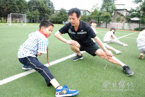 “立正、稍息、向右看,同学们,注意保持你们的姿势……”9月9日下午,记者见到顶新小学体育老师范登华时,他正忙着给学生们进行常规训练:压腿、跑步、跳跃,虽然天空飘着毛毛细雨,但范登华却丝毫不介意。 坚持学习 不断提高自身素质 今年51岁的范登华已经在教师这个岗位上任职31年。由于学校地处农村,师资匮乏,刚进学校时,他不仅担任语数教学,还得带几个班的美术和音乐课。1993年,他又成了全校学生的体育老师。 刚开始的一两年里,由于缺少体育教学经验,范登华只能从最简单的基本动作训练学生。“并不是专职体育教师,那段时间着实让人头疼。”为了做一个合格的体育教师,除了不断钻研课本以外,还会常常向其他体育老师请教学习。为了将一个动作做到标准,得私下练习好几十次。如今,通过不断加强自身学习和丰富专业知识,范登华已经成为一名优秀的体育专职教师,他发表的《构建充满生命活力的体育课堂》以及《体育课堂教学设计》等教育教学论文获得了德阳市二等奖。 近年来,他始终坚守“健康第一”的教育思想,努力提高学生身体素质。在今年全市中小学生田径运动会上,顶新小学拿下团体总分14分,他带领的学生李佳和汪洋更是分别夺得女子跳远和400米赛跑第四名的好成绩。 远赴支教 把爱传递下去 2006年,范登华被选派到中江县一所偏远的小学支教,除了担当体育老师以外,还得担任学生的美术及科学教学工作。刚进学校时,该校正在扩建,由于场地有限,学生们的体育训练几乎为零。为了让孩子们提高身体素质,范登华四处奔波借来录音机,并编排了新的广播体操和集体舞教给学生,课间时间里,他还常常组织学生们做些小游戏放松心情。 “这里的学生几乎都是留守儿童,家里非常贫困。”在支教的生涯中,令范登华最难忘的是其中一堂美术课。他在黑板上画完画,让学生临摹并涂上自己喜欢的色彩,可令他不曾想到的是,每个孩子的手中仅有一只画笔,并且早已无法使用。 这堂课结束以后,范登华暗自决定把更多的关爱带给孩子们。“虽然不能从物质上改变什么,但我至少要让他们感到快乐。”每天晚饭后,范登华都会挨家逐户地为学生指导功课,并和家里的老人们聊天拉家常,一来二去,他渐渐成为了学校最受欢迎的老师之一。 春来秋去,一年匆匆而过,范登华的支教生活结束。临走前,孩子们紧紧拥抱着这个给予他们关爱的老师,嘴里断断续续地说着不要走,看着这些天真可爱的小脸,范登华早已湿了眼睛。 “做教师要先学会做人,关爱学生是教师之根本”,这是范登华时常挂在嘴边的话。三十一年来,他把他生命中最美好的时光献给了孩子。如今的他,早已两鬓斑白,可他仍然用无私的爱奔跑在操场上,奔跑在孩子们的心里。