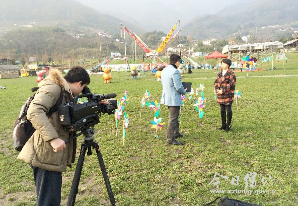 本刊消息 12月22日到25日,中央电视台记者一行3人来到我市,就农家乐发展进行聚焦。在绵竹期间,央视记者先后到孝德镇年画村、九龙镇清泉村等地深度采访拍摄了我市具有代表性农家乐的发展,并对绵竹年画艺人和九龙滑草场等地进行采访拍摄。据悉,该节目预计2016年1月中旬在央视《经济半小时》栏目中播出。(图为记者在九龙滑草场采访拍摄)