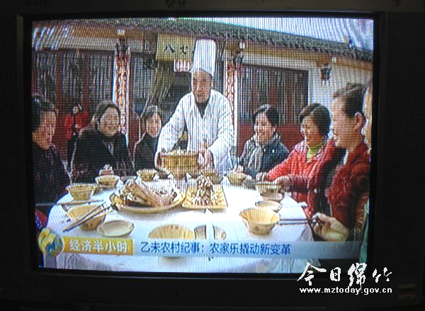 本刊消息 1月7日晚,央视二套(CCTV-2)财经频道《经济半小时》栏目以《乙未农村纪事:农家乐撬动新变革》为题深度报道了我国农家乐的发展变革。 该节目以农家乐为农村、农民带来怎样的机遇为主题,对农家乐发源地四川农家乐的不同模式及发展过程进行深入分析,对农家乐发展模式的变化及未来发展方向进行深度思考。节目对我市孝德镇年画村殷牛排和九龙镇清泉村清泉农家两家农家乐以及年画村陈强父子的年画作坊等进行了大篇幅报道。 当晚9:20分,《经济半小时》开播,我市孝德镇年画村殷牛排首先亮相。节目对殷牛排业主殷万能发展农家乐的经历、发展模式、经营情况以及对自家生活和村民们生活产生的变化等进行了详细报道,深度探讨了以特色菜为主的农家乐发展模式。随后,镜头又对准我市九龙镇清泉村廖俊宏的清泉农家,报道以震后廖俊宏发展农家乐的经历和模式,对我市沿山一带农家乐以“特色农家菜+休闲旅游+娱乐健身”的发展模式进行剖析。同时,节目还以年画村陈强父子俩发展绵竹年画产业取得的成果为例,展示了年画村以年画文化带动当地旅游发展的农家乐经营模式。 整个节目以四分之三的篇幅聚焦我市农家乐发展,从对殷牛排、清泉农家等农家乐的个案分析,到政府部门各项促进农家乐发展的政策举措,深入报道了近年来我市农家乐发展的特色和取得的成效,展示了我市新农村新农业的变迁发展成效。