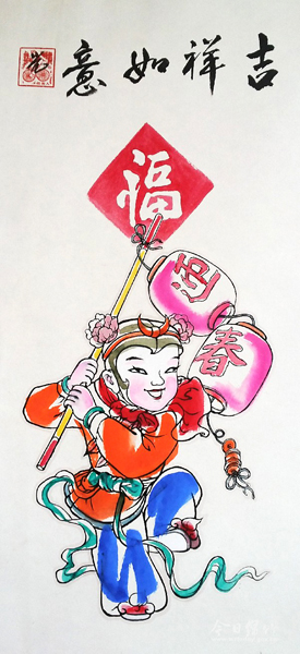 本刊消息 2月7日,农历除夕,绵竹年画登上了央视4台的2016春节大型直播特别节目《传奇中国节》的荧屏。 在节目中,绵竹籍歌星光头李进在直播间与央视主持人对话,介绍了绵竹年画的故事。李进展开一幅绵竹年画《吉祥如意》侃侃而谈,向主持人以及全国、全球华人介绍了绵竹年画的特点、特色和年画以外的故事。 据悉,绵竹年画《吉祥如意》是由绵竹年画博物馆馆长胡光葵创作,采用绵竹年画的独特技艺“填水脚”的方式绘制而成,画中一只灵猴握住一根金箍棒,金箍棒上系了两个红灯笼,灯笼上方是一个大红的“福”字。该画用大写意手法,寥寥几笔就勾勒出一副祝福的年画,并把吉祥、猴年、喜庆、祝福等元素融入其中。 据悉,在今年春节期间,《光明日报》、人民网、新浪网、《四川日报》等多家主流媒体也对绵竹年画及第十五届绵竹年画节的盛况进行报道,有50多条新闻报道登上各级新闻媒体。