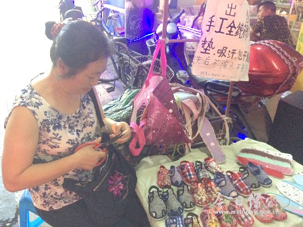 太阳落山,天气逐渐凉爽,各夜市摊主忙碌起来。绵竹广场附近,一三轮车上摆满了各式手工棉布凉鞋、垫子,吸引了不少市民驻足。早已淡出人们视线的手工鞋让人不经想起“最爱穿的鞋是妈妈纳的千层底”。 手工鞋舒服 受市民追捧 “大姐,我买5双鞋垫!”“我要2双15码的凉鞋!”6月13日晚上,记者看到,选购棉布凉鞋的市民络绎不绝,摊前简易的招牌上弯弯扭扭的写着“纯棉手工布鞋,吸汗养脚……”“鞋底、鞋帮都是手工缝制的,走路不打脚,也不会觉得累。”家住西南镇红明村的摊主何天凤正忙着给顾客介绍。 记者也被那一双双做工精美、小巧可爱的手工凉鞋所吸引,走近一看,凉鞋款式大方,花色独特,给人一种返璞归真的感觉。 “这些手工凉鞋每双28元,鞋垫每双8元,部分鞋垫已经断码了。”何大姐告诉记者,手工做的鞋子穿起来舒服,很多家长喜欢这些婴儿手工鞋,她春季在家赶制的鞋子已快卖完了。 因病得福 自学做鞋手艺 2004年,身体结实的何天凤患上了结肠炎,整日被病痛折磨得腹痛难忍,时常便血,一度有放弃的念头。在华西医院治疗期间,为了转移疼痛,何天凤叫家人给她买来布料,一边忍着疼痛,一边纳鞋垫。简单的布料在她的巧手下,变成一双双精致的鞋垫,从此开启了她的手工生涯。 “那场大病后,我学到了一门养活自己的手艺。”说起手工布鞋,何天凤打开了话匣子。白天她在地里忙农活,晚上则熬夜研究鞋样。为了学习做鞋技术,她经常将自己和家人的鞋拆开,照着模样反复重新做,从剪样到粘鞋垫、缝制、缩水处理……每道工序都是她亲手完成。 最痴迷时,何天凤为了学好手艺,基本上跑遍了绵竹各个布鞋店。每到一家,她都会拿着鞋子左看右看,研究半天,经常被店家误以为她精神有问题。 为圆儿时梦 将传统手艺进行到底 何大姐告诉记者,小时候家里穷,过年的时候,如果有双妈妈做的新鞋是一件值得炫耀的幸福事。那时,她的梦想便是长大后能够做各式各样的鞋子。 2005年初,何天凤买回大量布料做成鞋子,在市区流动摆摊售卖。让何天风没想到的是,原本她认为会热销的手工鞋却遭到市场冷遇,偶尔卖出去的鞋子也被反馈不合脚,不舒服。 “刚开始拆了重做成家常便饭,最多的时候,一双鞋子反复改了7次。”不服输的何大姐将卖出去的鞋子收回来细心研究,按照顾客提出的建议挨个重新划样、裁剪、缝纫,直到满意舒适为止。 “喜欢针线活,我会一直做下去。”何天凤脸上满是笑意。她告诉记者,她会坚持做自己的手艺活,将传统手工鞋进行到底,她坚信自己做的布鞋会得到更多人认可。