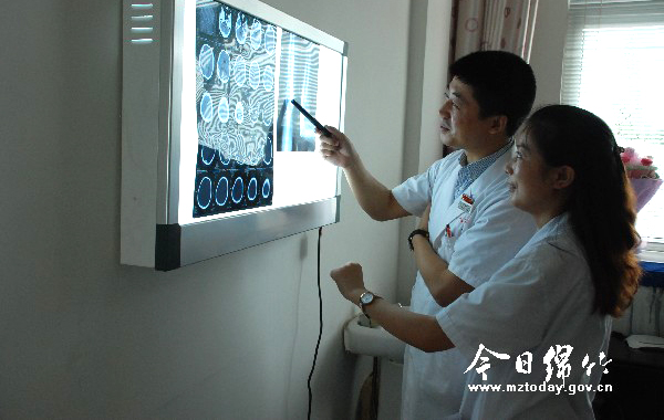 图为张文科(左一)正在看片诊断病情