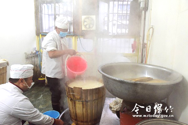 “梁醪糟蜜蜜甜,吃着吃着快过年……”流传在绵竹民间的哩语随着时间的远去愈发有韵味,让人充满怀念。 >>闻香寻访 冬日的凌晨,当一轮明月还悬挂在天空时,记者来到绵竹市区东门大桥滨河路段,寻着醪糟的甜香,沿着“梁醪糟”招牌指引,走近正在制作醪糟的作坊。踏上二楼的生产场地,看到几名工人正忙着将当天早上浸泡好的东北糯米倒入热气腾腾的甑子中。 上甑、蒸米、透水、拌曲、入缸、盖面……一个个环节一丝不苟。3天后,一缸缸醇、甜、白、净、匀,飘香扑鼻的醇酽醪糟就会呈现在眼前。 “我们早上4点钟就开始泡糯米,做了4甑,平时200斤糯米,现在冬季需求旺盛,增加到300斤。”主人梁铭权对记者说,他是“梁醪糟”的第六代传承人,梁家制作“梁醪糟”已经有300多年历史。 >>守护技艺 梁铭权说,他的父辈有六姊妹,其父亲梁显如排行老大,和二爸梁显福一直在传承祖辈制作醪糟的技艺。2009年,家住积英桥附近的二爸由于房屋拆迁,加之年事已高,无法再继续制作经营醪糟。于是绵竹市场出现了很多外来的醪糟,甚至假冒的“梁醪糟”。 眼看着这个绵竹的传统百年美食就要消失,作为梁家的长孙,从小在爷爷、父辈那香醇的醪糟记忆里长大的他,情感上有一种不舍,内心更有一种责任。虽然梁铭权在自己的事业领域小有所成,但他还是决定挑起这个重担,让更多的人品尝到“梁醪糟”的魅力,将“梁醪糟”发扬光大,流传后世。 《绵竹县志》和绵竹政协编辑的文史选集都记载了绵竹名小吃之一的“梁醪糟”的有关情况。 醪糟,又名甜酒、米酒,是我国最早的酒。绵竹酿造醪糟历史悠久,从宋代大诗人苏轼所作的《蜜酒歌》的小序可知,“西蜀道人杨世昌,善作蜜酒,绝醇酽,余既得其方,作此歌以遗之”可见当时绵竹的蜜酒,不仅能造,而且质量较高。 >>回望历史 梁铭权说,小时候经常听父辈们讲,梁氏家族的老家在旌阳区柏隆镇,是明末清初由陕西汉中府迁入四川的。 清朝年间,其高祖父即在柏隆场镇经营醪糟生意,老人家所作的糍粑醪糟色白如玉,入口香糯绵软,享誉一方。高祖父去世以后,由曾祖父接着继续经营。 到了辛亥革命时期,其曾祖父、曾祖母便带着大爷梁有贵、爷爷梁有富和姑婆梁有贞到绵竹县城投奔亲戚,在北门外猪市河坝旁继续摆摊卖醪糟。不幸的是在两年之内,曾祖父、曾祖母相继病故,让本就贫困的家庭雪上加霜。 为了活下去,大爷爷梁有贵便以稚嫩的肩膀挑起了养育弟妹的重担,把醪糟生意继续维持下去。大爷爷年事稍长便显示出他精明、干练的才能,除了在酿造技术上秉承了祖传的工艺之外,还把摊点迁到了东河坝口原来的民生市场石碑后面。当时的粮食市场、肥猪市场都在东河坝口,是客商云集的地方,人气非常旺。大爷爷把炉灶锅碗打造一新,炉灶采用黄铜面料,锅和筷筒用锡做的,桌凳一律用土漆漆过,碗盏全用江西瓷器,平时擦拭得铮亮,醪糟量足味好人热情,童叟无欺,因此声誉日隆,“梁家的醪糟好吃”远近闻名。为了方便经营生意,大爷爷梁有贵将字号改为“义成源醪糟坊”。 在上世纪四十年代,由于大爷爷身体衰弱,便把生意交给已经长大成年的爷爷梁有富做,大爷爷只负责指导和采购。爷爷梁有富接过担子更加兢兢业业,一丝不苟,在醪糟的生产过程和醪糟的饮食服务上更是狠下功夫,精益求精,生意因此更加红火,遇上逢场,一天能卖一百多斤醪糟。 “梁醪糟”的糟不结不烂,粒粒上浮,洁白如珠,醇酽爽口,酒味浓而不觉燥,甜润适口而不返酸,其声名远播,成为绵竹著名小吃之一。 解放以后公私合营,爷爷梁有富参加了合作商店担任经理,对醪糟等小吃仍然精益求精。1958年参加绵阳地区饮食行业比武大会,爷爷梁有富做的糍粑醪糟获得银奖。爷爷去世后,由于大部分梁氏子孙都已在其他行业生存立足,二爸梁显福出于生计需要,从上世纪八十年代开始继续醪糟的制作,在家中办起了家庭作坊,走街串巷叫卖,获得良好口碑。 >>注册商标 梁铭权说,由于自己从小在醪糟的香味里长大,对醪糟有种超强的亲切和熟悉感。如今,在父辈的指导下,加上原料精良、工艺精益求精,自己作坊里制作出的醪糟在色香味方面甚至已经超越了父辈。梁铭权表示,“梁醪糟”的制作技艺经口传心授,代代相传,特别是关键环节自己必须把关,糯米蒸熟后的透水、加曲、搅拌等环节都不能有半点疏忽。从过去蒸米用柴火到后来的烧蜂窝煤,再到现在用天然气,时代变了,但是制作醪糟的技艺始终坚守传统,为的是留住技艺,记住乡愁。 如今,“梁醪糟”这朵美食奇葩又在绵竹大地美丽绽放,不仅在绵竹本地销售,而且还有德阳、成都、绵阳的客人慕名而来,甚至不少绵竹人把“梁醪糟”带到广州、南京、北京等地,作为馈赠亲友的礼品,让绵竹名小吃香飘远方。 为保护知识产权,2014年梁铭权向中国工商总局商标局申请注册“梁醪糟”,并于2016年7月7日成功注册。梁铭权希望通过自己的努力,让“梁醪糟”得以继续传承并发扬光大。