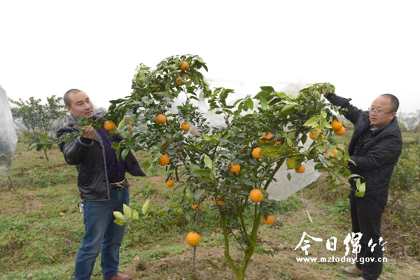 本刊消息 从四川农业大学引进培育的柑桔在绵竹种植获得成功,并繁育种苗。当年栽种当年挂果,第三年进入丰产期,每株树可结果25公斤,柑桔在3月份上市,成为开春后第一个上市的水果品种。这种柑橘就是位于土门镇的绵竹市昊源农产品开发有限责任公司种植的桂晚柑。 近日,记者在土门镇新乐村2组的种植基地看到,这里的技术人员正在对挂满桂晚柑的果树盖上透明的白色塑料薄膜,以防止桂晚柑遭受霜冻灾害。 绵竹市昊源农产品开发有限责任公司负责人黄军指着一旁的小桂晚柑苗说,这是第一年栽下的幼苗,树上都结果了,但是考虑到培养树形,他们都会把果子摘了,第二年再开花结果。 黄军告诉记者,桂晚柑是他们5年前从四川农业大学引进的,目前在绵竹试种成功。2016年,公司取得了该品种在四川的经营权。去年以来,他们在土门繁育了上百万株的苗子。同时还引进培育了艾圆、不知火、春见、大森一号、黄果柑等近10个品种的柑桔,并且在绵竹都成功种植。 为了带动绵竹农户种植,该公司指导九龙、板桥、土门等地一些农户种植了桂晚柑500亩。 据悉,桂晚柑是四川农业大学培育的新品种,晚熟、水分充足,糖份含量为15-18%,入口脆,鲜嫩,耐储藏。 黄军对记者说,他们种植的桂晚柑是在黄果柑基础上改良培育的。在头年3月栽种苗子,第二年3月就会开花结果,第三年正式挂果,7年后,每亩可达5000公斤的产量,按照目前的市场价格折合,每亩每年至少有1万元的收入。每亩田可栽植桂晚柑苗子70株,非常适合在绵竹种植。 为了把这种优质水果做大做强,2016年底,黄军还在绵阳市河边镇流转坡地300亩,今年3月他们将让那里的荒地披上绿装,为今后他们的桂晚柑打入国外市场做准备。