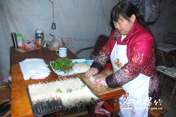 在我市春晞路的一个小巷子里有一个十分简易,然而却十分出名的小吃摊。说它简易,是因为这个小吃摊其实就是一个调料柜,加上摆放在露天小巷里的几张小桌子。说它出名,是因为这家小吃摊的主人用一个春卷俘获了绵竹三代人的胃。 摆摊30余年卖春卷 成当地老味道 切丝、包皮、调汤汁、收钱……2月8日上午9点,记者来到小吃摊时,李云平和她的女儿女婿正在忙碌着。只见李云平将洗好的红白萝卜、莴笋、青笋等配料一一切成丝状,然后拿起一张薄薄的面皮铺平,再将切好的菜丝整齐排放其中,将其卷起,这样一个春卷就做好了。 “李嬢,给我拿50个春卷打包带走。”“李姐,来一份春卷,一两米粉,在这吃。”“好嘞,马上。”记者在现场看到,来李云平的小吃摊买春卷的顾客一个接着一个,不仅有小孩,青年人,还有中老年人,有的还专门开车来到她的小吃摊前买春卷。 “这里的春卷就是好吃,这么多年,味道都没变过。”市民林女士是老顾客了,只要路过这里就一定会买春卷。林女士说,这里的春卷用料很足,味道也地道,尽管有时候辣得直流眼泪,但是越辣就越想吃,越吃就越有味。 “以前吃我春卷的那些小娃娃现在都当父母了,他们不仅带着自己的孩子来吃,还打包到外省去送人。”说起这事,李云平颇为自豪,她从80年代末开始卖春卷,到如今已快30年,近三代人都吃过她做的春卷,也成了绵竹当地有名的老味道。 用心经营 老味道赢得顾客追捧 “从面皮到菜丝,再到汤汁,制作春卷的所有材料都是我自己亲手做的。”李云平说,她家的春卷有麻辣和糖醋两种口味,而里面的配料都是常见的蔬菜,并没什么出奇,出奇的是她浇在春卷上面的汤汁。 “这些汤汁都是我自己研制出来的。”李云平说,她小时候吃过别家的春卷,尽管味道不错,但是却总觉得少了点什么,于是她自己便开始琢磨,最终研制出独有的汤汁。其中,值得一提的是汤汁中的醋要用黄糖熬制的糖醋,芥末不能用芥末油,一定要用芥末粉,这样吃起来才有香味。 除了汤汁,春卷皮的制作也很讲究。因为白天要忙生意,做面皮的活,李云平大都放在晚上。事先,挑选好面粉,然后和面、加水搅拌,直至粉浆浓如糊、有筋劲有弹性。然后要掌握好火候,捞起一团面糊放入锅里,转上几个圈即将面糊提起,便变成了一张张薄薄的、软韧的春卷皮。 “一个春卷制作起来看似简单,然而背后却要花费很多时间和精力。”李云平说,每年春节前后都是她们一家人最忙碌的时候,生意最好的一天能卖1700个春卷,很多都是口口相传,慕名前来的。 30余年来,到李云平的小吃摊买春卷的顾客换了一批又一批,但不变的是这种味道和顾客对春卷的热情。“我年纪大了,做春卷实在太累了,所以打算退休了。”李云平指了指正在忙碌的女儿和女婿,“顾客不用担心吃不到春卷,我会把手艺都教给他们,让他们把这种老味道传承下去。”