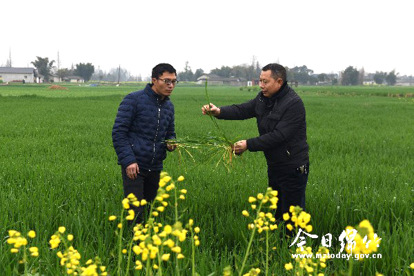 2月8日,孝德镇金星村9组一片嫩绿的麦田边,种粮大户黄伟和市农业局现代农业科研所所长、高级农艺师付书明正在查看麦苗生长情况。随后,他们又分别前往附近不同的田块查看了麦苗的长势。 “你这个田块麦苗偏黄和植株稀疏的地方,可适当补充点尿素,以促进增加田间基本苗”。 “我今年还要扩大发展稻—鸭共生的生态农业试验面积”。鸭子的嘴巴会把田埂戳烂,请你帮我看下哪些田块更适合。 “你要选择适合管理的田块,田边要加围栏,田埂要采取硬化措施,或者用红砖、砌块把田埂硬化了。” …… 两人一边查看,一边在田间交流道。 听取专家建议 创业从农业起步 今年34岁的大学生黄伟已返乡从事农业生产整整4年。毕业于成都大学财经专业的他,先后外出工作了几年,积累了一定的资金。4年前,当时返乡打算创业的黄伟找到绵竹农业局的技术专家付书明,请教从事什么产业较好时,付书明建议黄伟从事农业生产的种植业。 在大学读书和外出打工期间,黄伟始终关注中央对农业、农村发展的有关政策。经过考察和论证,2013年,黄伟从孝德镇金星村9组家里附近的农户流转土地100亩,用于种植水稻和小麦。 在自身的努力和农业专家的指导下,黄伟粮食生产获得成功。 创新种植模式 走优质高效绿色之路 “农业生产要走优质、高效、绿色之路”黄伟说。 2016年他流转土地面积增加到600多亩。去年9月底,水稻收割后,他在其中100亩田里及时播种了生育期长的优质专用品种小麦。他说,这样一来稻草既能及时还田,还能免去移动稻草增加的人工成本,并且还能比10月下旬栽种普通小麦节约一笔清除杂草带来的打药费用。 从当天付书明诊断该品种长势来看,去年黄伟播种的这些专用小麦苗情良好。 前几天,中央公布了2017年一号文件,黄伟及时从媒体上了解到具体内容。他相信,随着中央对农业政策的倾斜和扶持力度的加大,今后种粮大户将会对继续种田、种好田,生产绿色农产品更有信心。 去年,黄伟试验了6亩田“稻—鸭共生”种植模式。他说这种方式利用鸭子吃虫,鸭粪种稻,同时由于鸭子在田间活动,田块中不容易滋生杂草,可以实现种水稻不施农药和化肥的目标,从而生产出绿色有机食品。 黄伟告诉记者,他计划今年将稻—鸭共生模式的种植面积扩大到50亩,以进一步积累经验,便于今后他在所有流转土地都推行这种种植模式。有中央政策的支持,有农业专家的指导,黄伟对大力发展绿色农业充满了信心。