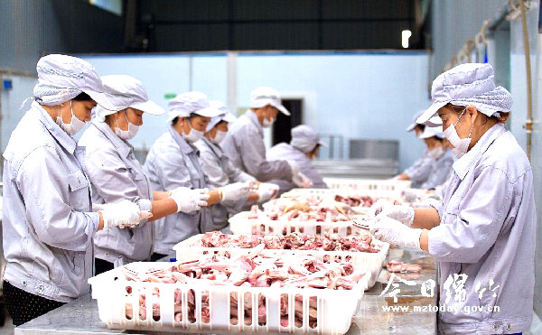 本刊消息 工人们身着工作装,头戴帽子、口罩,熟练地进行着分拣、装袋、包装。一筐筐包装好的卤制品,随着传输带送出来,等待装车,运往外地。这是记者在位于土门镇的绵竹赵君记食品有限责任公司生产车间看到的一幕。 据了解,绵竹赵君记食品有限责任公司是一家专业生产经营板鸭及各种卤肉制品、腌腊制品的食品公司。作为一家农产品加工的劳动力密集型食品企业,2014年公司带动商品鸭养殖户实现利润300余万元,解决农村劳动力达300余人次。同时,作为绵竹生产肉制品的标准企业,公司经过硬件升级、软件配套、科学管理、定期培训、规范操作,使其成为目前德阳地区肉制品加工企业的标准示范企业,为肉制品深加工行业起到了表率作用。 “为了确保卤制品的质量和口味,我们都是晚上生产,早上就基本加工完成。平均每天能生产近5000只板鸭、1000余斤卤猪嘴和猪耳朵。”据公司总经理赵喜强介绍,近年来,公司先后投入1200余万元,新建了生产基地,冷冻库、材料库、化验室、卤制间、产品筛选区,实现了流水线生产,产量较之以前翻了两倍。目前,公司有“赵君记”、“天府粮仓”、“土门赵”、“调夫卤味”四个注册商标,产品种类包含秘制土板鸭、酱香鸭、甜皮鸭、香辣鸭头、怪味兔头等55种卤肉制品及风吹鸭、川味腊肉、香肠、蚕丝兔、蝴蝶猪脸、风吹鸭胗等20种腌腊肉制品。 随着公司产业链的不断完善和加强,产品种类进一步丰富,生产规模进一步加大,公司从2015年开始发展直营店及加盟店。目前已有100家直营店及加盟店,分别分布在德阳、绵阳、什邡、广汉等地,预计在今年年底将发展至270余家,遍及成都、简阳、资阳、遂宁等地。“作为拥有自己熟食加工厂、专业的加盟服务团队、专业的物流途径、专业的店员培训师的公司,我们希望以微利经营、长足发展、创百年企业、树百年品牌的经营理念,一切为了顾客,提供超值服务的服务理念,以健康、营养、绿色的质量理念,力争成为川渝熟食第一品牌,为人们在餐桌上吃到安全的食品提供保障。”赵喜强说。