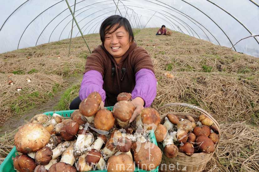 秸秆种植蘑菇获丰收