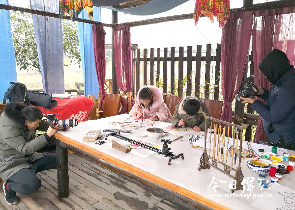 本刊消息 2月6日,央视新闻频道栏目《一年又一年》摄制组来到绵竹,对我市非物质文化遗产绵竹年画进行了专题采访。 当天上午,节目编导、摄像师等一行5人走进孝德镇年画村三彩画坊,对绵竹年画的特色、表现方式及制作工艺等进行深度采访,并对年画之乡的过年氛围进行拍摄。 记者了解到,此次栏目组在全国范围内选取了年画、花馍、剪纸、泥塑等具有年味的非遗项目代表作为拍摄对象,并选点绵竹,于2月5至8日对绵竹年画进行专题采访。期间,摄制组还将采访拍摄我市年画节开幕式活动等,并于2月15日(农历大年三十)在央视新闻频道播出。 据悉,央视新闻频道春节大型特别节目《一年又一年》自2002年底推出,是作为央视春晚的预热节目,给人以过年的喜庆劲,以充满了年味的《春节序曲》和全国一些地方的实时镜头作为开头,一般由央视新闻频道著名主持人轮番主持。节目一般从除夕上午9时开播,直到春晚结束后才结束直播。 当天,央视新闻中心四川记者站记者也来到我市,对我市第十七届年画节筹备情况及开幕式盛况进行采访拍摄。
