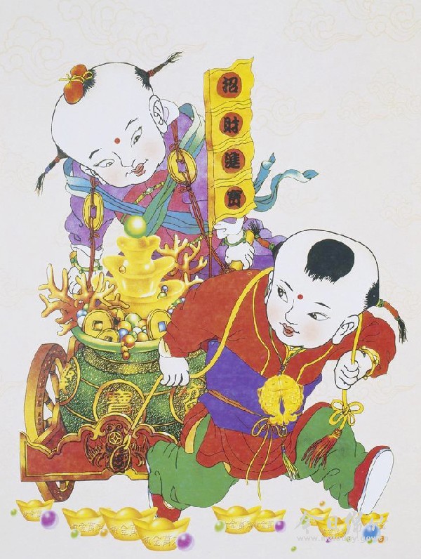 遍地开花 绵竹年画远销四海 绵竹年画自宋代产生,经过明代发展日趋成熟。据《续编绵竹县志》记载,绵竹年画在明代时已有相当成就。当时四川沪洲及陕西蒲城地区已贴过内容喜庆的绵竹年画,可见明代时绵竹年画便远销省内外享有盛名。 到了清代乾隆、嘉庆年间,绵竹年画达到鼎盛时期,其生产规模已相当庞大。据不完全统计,当时绵竹有年画作坊共计三百余家,遍布县城及城郊西南、板桥、孝德、新市、清道、遵道、拱星等乡镇,从业年画艺人一千多,加上帮工,从事年画生产人员达万人以上。全县每年的年画产量空前巨大,每年生产门神、斗方达一千四百多万份,画条200万份以上,当时还成立了年画行会“伏羲会”。大量的绵竹年画通过画商经营销售,其方式分“座商”和“行商”两种,设铺面的称作“座商”,当时仅县城就有30余家之多。不设铺面的流动经营推销的称“行商”,其数量更为众多。通过他们,绵竹年画销往陕西、甘肃、青海、云南、贵州、湖南、广东、广西、新疆和港澳等地,甚至还远销今天的越南、缅甸、印度及东南亚各国。 清代后期,绵竹开辟了专门销售绵竹年画的市场。大市场在城内的南华宫,从腊月初一到三十,天天出售年画,自清晨到深夜,年画市场十分繁荣。小市场在城中北河坝及清道乡,从清道乡至绵竹城郊的南轩祠,约15华里的大路旁摆满了年画摊子,故当地有“冬月初一挂望子,腊月初一摆摊子”和“东门河坝去观花,南华宫里去看画”的俗语。每年腊月的桃符市遍及城乡,在乡镇街头摆一个摊,文人墨客争相展才献艺,乡民纷纷前往购买。家家户户贴春联贴门神,如“天官赐福”、“招财进宝”、“秦叔宝和尉迟恭”等。 绵竹年画在发展过程中,涌现出了许多名家。年画作坊中最有名的要推城内的梁云鹤画店和傅兴发作坊。梁云鹤画店的拓片雕工精细,傅兴发作坊的门画人物生动,色彩艳丽。还有清道乡生产的“清水大袍”、遵道乡的美人、娃娃等年画也很有特色,有成就的画师更是层出不穷,绵竹年画得到了进一步的发展,成为我国著名的木版年画杰出代表之一。
