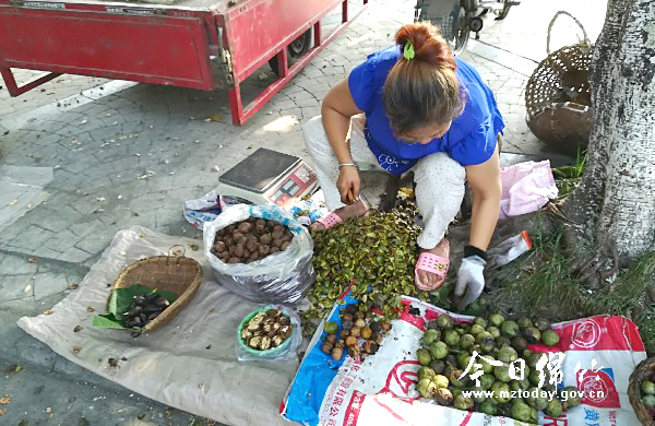 新鲜核桃上市 引来市民尝鲜