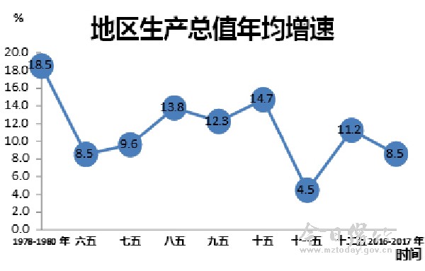 本刊消息 1978年,党的十一届三中全会送来了解放思想的春风,奏响了改革开放序曲,拉开了中国特色社会主义建设序幕。40年励精图治,绵竹人民在党的领导下,紧紧围绕经济建设这个中心,发扬吃苦耐劳、攻坚克难、奋力拼搏的精神,在改革开放中谱写华丽乐章,经济发展步伐不断加快,综合经济实力显著增强。尤其是党的十八大以来,绵竹抢抓机遇,努力破解经济社会发展难题,大力培育新的经济增长点,国民经济和社会发展取得了重大成就。 经济总量节节攀升。改革开放以来,全市经济总量稳步扩大,经济实力逐渐增强。1978年全市地区生产总值(GDP)仅为1.4亿元;1984年实现经济总量第1个翻番,达到2.9亿元;1988年实现第2个翻番,达到6.4亿元;1991年突破10亿大关,次年实现第3个翻番,达到14.0亿元;1996年实现第4个翻番,达到30.2亿元;2003年实现第5个翻番,达到67.0亿元;2007年实现第6个翻番,达到142.5亿元;2008年受地震、东汽搬迁等因素影响,绵竹经济出现转折,全市地区生产总值出现断崖下挫,2008年地区生产总值仅为上年的72.8%、2010年仅为上年的95.2%,但是不影响全市经济持续攀升势头,综合实力在2011年突破震前水平的基础上持续扩张,经济增长快速持续,2014年突破200亿元大关,后经济总量持续攀升,连年创新高。2017年,全市实现地区生产总值260.7亿元,比1978年增长191.2倍,比2008年增长1.5倍。 经济增长快速持续。改革开放以来,全市经济保持较快增长势头,按可比价计算,年均增长10.9%,比德阳高0.8个百分点。其中经历了“六五”、“七五”全国经济初起步,“八五”、“九五”全市工业强市雏形呈现,到“十五”工业化进程突飞猛进,“十一五”地震灾害断崖冲击,“十二五”灾后重建恢复的高速发展,年均增速分别为8.5%、9.6%、13.8%、12.3%、14.7%、4.5%、11.2%。进入“十三五”,全市经济产业转型,经济由高速增长阶段向高质量发展转变,经济增长向中高速转变,2016年、2017年分别增长9.0%、8.1%。“十五”期间全市发展进程最快,年均增速远超其余时期,其次为“八五”和“九五”时期,为全市经济发展作出突出贡献。 经济水平几何倍增。改革开放以来,全市经济发展水平得到大幅提高,人均地区生产总值呈现指数几何倍增。1978年全市人均地区生产总值292元;1984年实现第1个翻番,达到599元;1987年人均地区生产总值突破1000元,快于德阳1年,次年实现第2个翻番,达到1300元;1992年实现第3个翻番,达到2788元;1995年突破5000元,次年实现第4个翻番,达到5935元;2001年突破万元大关,早于德阳3年,次年实现第5个翻番,达到11435元;2005年突破2万元大关,早于德阳4年,次年实现第6个翻番,达到23742元;2008年受地震及后续影响,出现断崖下挫,后灾后重建恢复原水平并逐步提高,2011年突破3万元,超越震前水平;2013年突破4万元,2016年突破5万元,2017年达到57034万元,比1978年增长194.3倍。 财政实力阔步前进。1979年全市财政总收入仅有1785.7万元,1996年建市之初为1.4亿元,2004年突破10亿元大关,2007年实现19.8亿元,2008年受地震灾害影响,当年财政总收入仅为3.9亿元,后通过灾后重建,快速恢复生产并实现突破,2009年恢复到13.3亿元,2010年突破震前水平,达到21.7亿元,2011年、2013年、2017年分别突破30亿元、40亿元、50亿元大关。2017年全市财政总收入达到52.7亿元,比1978年增长293.9倍,年均增长15.7%。