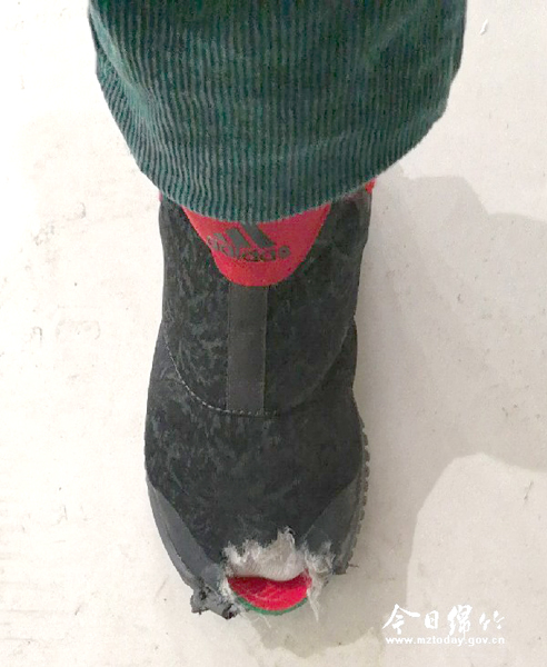 乘坐电梯 小孩鞋子竟被“咬”掉一大块