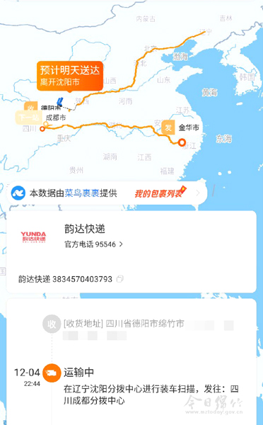 “浙江——四川——浙江——四川——辽宁,当我还刷着朋友圈里的旅游晒照时,快递已经任性地开启了疯狂乱走位模式,替我去领略祖国的大好河山了!”日前,市民刘女士在朋友圈戏称,自己的一件快递“二过家门而不入”,任性地跑去了辽宁沈阳赏雪景。 11月28日,刘女士在淘宝上下单购买了价值30元的饰品,不久后韵达快递揽件,饰品在浙江主城区义乌北苑服务部进行揽件扫描,发往四川南充分拨中心。12月2日,刘女士打开淘宝查看物流,发现快递早已到达成都,扫描后却又在运回浙江的路上。以为是店家发错物品,临时召回快递,刘女士也未上心,只是到了12月6日再次查看物流时,快递的运输轨迹让刘女士捧腹大笑,此时这件快递居然是在从辽宁沈阳运回四川的路上。 刘女士笑称,从浙江到安徽、湖北、重庆,路过成都稍作停留又立即启程去陕西、山西、湖北到辽宁,自己的快递在中国地图上洋洋洒洒地“写”下了大大的“V”字。 快递任性旅游也在刘女士的朋友圈引起了热议。大家纷纷晒起遭遇“任性快递”的故事。一位朋友说,2016年,她的一件快递就是绕了一圈去内蒙古看草原。还有朋友表示,自己的快递好几次都独自跑去绵阳“逛街”,甚至也有快递“绕晕了”,去过乐山市棉竹镇。 “30块钱的东西,旅游成本都高了,我就怕韵达快递亏哭了。”当天,刘女士与韵达快递取得联系,客服称会马上催单,尽快将快递送到刘女士手中。