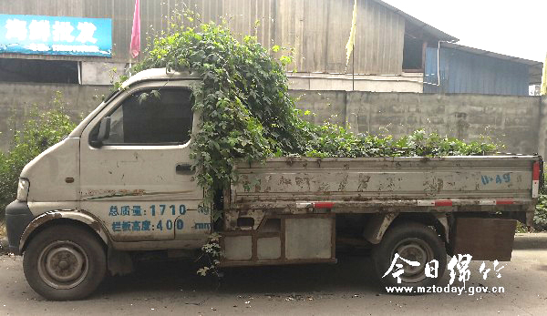 满身长藤蔓 路边僵尸车成“盆景”