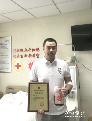 7月11日中午,在成都某医院造血干细胞采集室内,市民王先生顺利完成了造血干细胞的血液离析采集,成为四川省第186例、绵竹市第27例成功实现捐献的造血干细胞捐献志愿者。 “有点紧张,希望能够尽快完成捐献,让患者及其家人早一点看到希望。”上午8点30分,看着血液随着机器运转进行体外循环,造血干细胞混悬液一点点被分离、采集起来,王先生稍有些紧张的心才放松了下来。不停重复攥紧拳头、舒展五指的动作,他希望能够尽早采集到足量的造血干细胞混悬液,尽快为焦急等待的患者送去生的希望。 王先生是我市土门镇人,一直热心公益的他在学校时就一直坚持定期无偿献血,希望尽自己的一份力去帮助别人。5月12日对于经历过“5.12”大地震的人来说,是一个特别难忘的日子,来自社会各界的关爱和帮助,王先生一直铭记在心。每年5月12日,王先生都会做一些力所能及的事情献出自己的一份爱心,以行动提醒自己心怀感恩,传递大爱。2016年5月12日,赶到中心广场参加无偿献血的他被一旁招募造血干细胞入库志愿者的宣传展板吸引,当时对造血干细胞捐献事宜并不了解的他却毫不犹豫地报名成为了志愿者,他说“能尽自己一份力去帮助别人,总是值得去做的。” 2018年,王先生得知自己与外省一位血液病患者血样初配成功。为更好地完成捐献,在工作之余,他开始上网查找造血干细胞捐献的相关知识。“跟抽血一样,只是时间稍微长一点,对身体没有伤害。”根据网上的介绍,王先生以更加健康的生活方式为捐献做准备,同时也下载了一些资料向家人讲解,让家人更加坚定地支持自己的决定。 2019年7月11日,经过3个小时左右的采集,297毫升造血干细胞混悬液从他的血液中成功分离了出来。看着工作人员与赶来运送造血干细胞混悬液的志愿者完成交接,身披绶带,手捧荣誉证书的王先生露出了由衷的微笑,再三拜托志愿者转达对患者的祝福和鼓励。“希望更多的人能加入到造血干细胞捐献志愿者的行列,尽自己一份力,挽救他人生命。”王先生说,经历过捐献,更加懂得造血干细胞对于挽救患者生命的重要性,此后他会以自己的经历向身边的人宣传造血干细胞捐献事宜,让“爱”的队伍不断壮大,让更多患者看到希望。 据了解,两个月时间内,已有两名来自土门镇的造血干细胞志愿者成功实现了捐献。