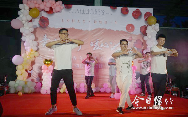 本刊消息 8月7日,因“七夕”节的到来,空气中都带着浪漫香甜。当天晚上,共青团绵竹市委、仟坤集团联手搭“鹊桥”,举办了以“青恋绵竹 暖心七夕”为主题的企业青年人才专场联谊活动,百余位单身青年男女共赴浪漫之约,在轻松欢快的氛围中寻觅佳缘。 彩色的气球,甜蜜的情歌让当天的活动现场分外温馨浪漫。7点30分,来自各企业单位的单身青年男女陆续相聚在仟坤集团活动场。两位嘉宾献唱情歌《你最珍贵》,婉转的音乐、深情的歌声,让空气中充满甜蜜的味道,引得台下嘉宾情不自禁轻声哼唱。来自仟坤集团的6位男嘉宾主动登台,以舞蹈《隔壁泰山》展现了他们充满朝气、时尚潮流的青春风采以及开朗幽默的个性,博得台下热烈掌声和欢呼声。在他们的带动下,现场嘉宾一扫拘谨,主动融入到现场欢乐浪漫的氛围中。在有奖问答环节中,从新时期绵竹精神到诗词歌赋,从大政方针到生活百科……争相答题中展现了现场青年良好的文化素养。而接下来的“齐心协力”、“同舟共济”、“心有灵犀”等互动游戏,更让众多单身男女在轻松愉快的氛围中拉近了彼此的距离,携手合作争第一,结“眼缘”、觅知音。 “太暖心了,结交了很多朋友,度过了一个快乐的‘七夕’”。90后青年小樊虽是外地人,可在绵竹工作的两年多时间里,不知不觉间爱上了绵竹的山清水秀人美,特别是绵竹的飞速发展,让他有了在绵竹安家落户的打算,无奈一直忙于工作和学习,计划一直搁浅。这次的联谊活动为他搭建了交友平台,让他感觉“这个七夕很有意义。”而他最希望的还是能通过此次活动找到“那个她”,开启自己的甜蜜人生。“家里安排的相亲太尴尬,希望在这次联谊活动轻松愉快的氛围中牵手成功。”戴着皇冠头饰,活泼开朗的姑娘小刘与不少嘉宾在活动中相识,互加微信,她说,特别感谢团市委和仟坤集团为单身男女搭建的交流平台,让她结识了不少积极向上、多才多艺的朋友。 据团市委相关负责人介绍,当晚参加活动的百余名嘉宾中不仅有绵竹本地青年,也有外地优秀青年。希望通过活动为青年人才提供友好真诚的交往平台,丰富青年业余文化生活,增进青年之间的友谊以及思想交流,帮助企业青年人才更好地扎根绵竹,为绵竹加快建设“工业强市、文旅名城、美丽家园”添砖加瓦。