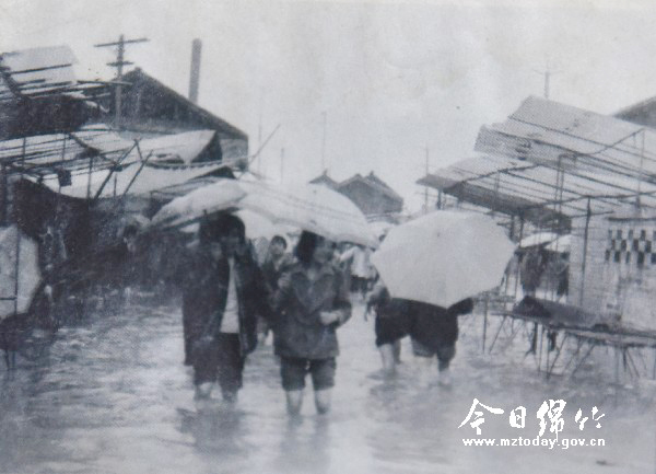 ▲1987年的夏季暴雨后,绵竹回澜街摊区(唐正和摄)