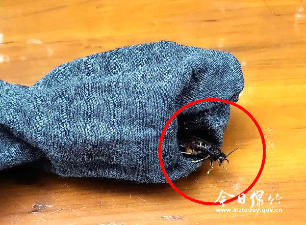 图片由受访者提供 本刊消息 “早上起来穿袜子,里面竟然钻进两只马蜂,好在及时发现了,不然这脚算是废了……”10月14日,家住城东赛拉维小区的市民刘先生发了这样一条朋友圈,引起了不少人的关注。 刘先生告诉记者,由于他家住在一楼,清洗后的衣服鞋袜都晾晒在外面。“早上起床打算换一双袜子,便去收晾晒在外边的袜子,正准备穿时看见里面有东西在动,打开后发现里面竟然有两只马蜂。”睡眼朦胧的刘先生一个激灵瞬间清醒,只见两只硕大的黑褐色马蜂还待在袜子里“取暖”,他赶紧从客厅找来一把剪刀,将马蜂的脚和尾刺减掉避免伤人。 “老婆前年就被马蜂蜇伤过,当时还是晾晒衣物时钻进去的。”刘先生说,不仅妻子的衣物里钻进过马蜂,就连孩子的衣服里也出现过类似的情况,因此他们在收衣服时都会戴上塑胶手套以防万一,避免被“不速之客”蜇伤。所幸,马蜂的蜂巢已经找到,且已在消防官兵的帮助下将其成功摘下。 市中医医院急诊科主任杨仁松表示,蜂和人一样,冷了也会寻找温暖的地方躲藏,特别是居民晒在阳台外的裤子、衣服、鞋子、袜子,都可能成为它们御寒的地方。因此,市民收衣服的时候,最好用力抖一抖,防止蜂类躲藏其中。一旦被蜂类蜇伤,应该及时前往医院就诊。 他提醒广大市民,螫人的蜂也分种类,所以处理时也应分别对待,有螫针留在皮肤上,说明是被蜜蜂螫伤,蜜蜂毒液呈酸性,可以用氨水、小苏打水、肥皂水等弱碱性液体局部冲洗;皮肤未留有螫针的,可能就是被马蜂螫伤了,马蜂毒液偏碱性,可选择食用醋、稀盐酸等弱酸性液体清洗伤口。在紧急处理伤口后应立即到正规医院医治。如果身体感到不适,要及时送到医院进行治疗,以免造成严重后果。