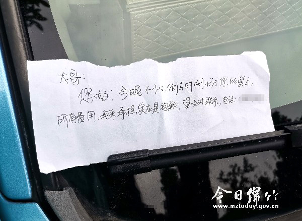 剐蹭车后留字条 诚信举动暖人心