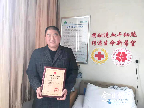 10月22日中午,在四川省某医院,我市广济镇环卫工人王先生顺利完成造血干细胞的血液离析采集,成为我市第30例成功实现捐献的造血干细胞捐献志愿者。 成功实现捐献 他希望患者能够早日康复 “身体没有什么不适,心情也特别开心。”22日下午,顺利完成造血干细胞的捐献后,王先生心里悬着的巨石终于落了下来。 王先生是我市广济镇石河村人,职业是一名环卫工人。2016年7月,在镇上的一次献血活动中,王先生第一次接触“造血干细胞捐献”这一名词。因当天感冒无法献血,王先生虽有些遗憾,不过现场关于造血干细胞捐献的宣传海报让他感觉很新奇。“只要对自己的身体没有伤害,捐献一些造血干细胞去帮助被病魔折磨的人还是很有意义。”在简单了解捐献事宜后,王先生当场递交了申请,并采集血样成为一名造血干细胞入库志愿者。 今年夏天,王先生得知自己与外省一位血液病患者血样初配成功,他毫不犹豫地表示愿意捐献。“很意外,听说能匹配上的几率非常小,没想到自己会是幸运儿。”王先生告诉记者,刚接到电话时,除了意外、惊喜,更多的是给自己加油打气,同时一定要把身体调整到最佳状态,让精配成功的几率更大,也希望健康的血液能够帮助患者成功实现新生。 从精配到体检的过程中,虽然经历了父亲因病离世,王先生仍旧忍住悲痛,一边处理父亲的后事,一边配合工作人员完成体检。 22日中午,经过3个小时的采集,261毫升造血干细胞混悬液从王先生的血液中成功分离。看着工作人员与赶来运送造血干细胞混悬液的志愿者完成交接,身披绶带、手捧荣誉证书的王先生再三拜托志愿者转达自己对患者的祝福和鼓励。 “这是一次全新的经历,在我看来这更是一场爱的传递。看着志愿者带着自己的造血干细胞赶往机场,心里的石头一下落了地,挺为自己骄傲的,那种快乐的心情很难用言语来表述。” 热情朴实 邻里眼中他是一位孝子、好人 1979年出生的王先生,在邻居眼中孝顺、勤劳、热心助人,是大家口口称赞的“好人”。 “他思想觉悟非常高,不然也不会成为造血干细胞捐献志愿者。”石河村村主任王明如对王先生评价非常高,他说王先生非常孝顺,与父母同住,父亲查出患有癌症后,他更加节俭,经常骑着三轮车带父亲四处求医。更可贵的是在照顾父亲的同时,他从没落下过工作,负责的区域总是干干净净。除了勤劳、孝顺,王先生还热心助人,只要村里有需要,他总是牺牲休息时间骑着三轮车来来回回帮忙运送东西,并且从来不收任何费用。每到农忙时,只要邻居有需要,王先生也会免费帮大家收割、运送种子、化肥等。去年,邻居张国金因遭遇车祸行动不便,王先生得知消息后,还主动骑着自己的三轮车将张国金送到医院,在此后的复诊、换药时,他也会主动接送张国金。(图片由受访者提供)