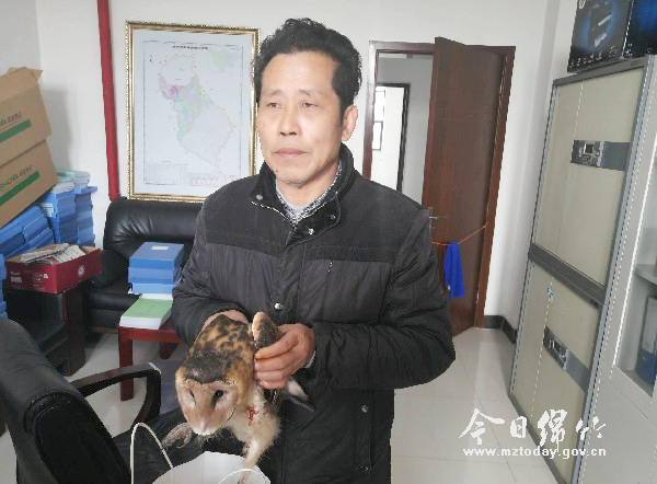 袁书琦将受伤的猴面鹰送到市自然资源和规划局