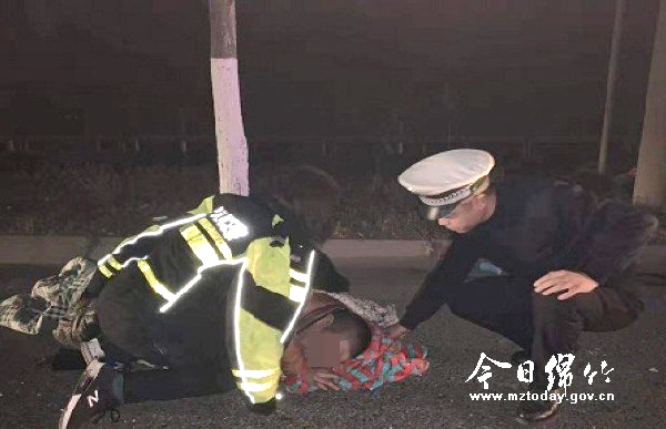 本刊消息 近日,德茂路发生一起车祸,其中一男一女受伤倒地,途经此处的市公安局交警大队一中队队员们见状后,立即伸出援手进行救助。见天气寒冷,伤者冷得瑟瑟发抖,其中一位辅警还脱下了警服,为伤者披上抵御寒风。这一暖心的举动也赢得了围观群众的连连称赞。 “大家不要围观,给伤者留出一点空间。”12月9日晚上8点,一中队民警在辖区巡逻检查,行至德茂路桂兰水泥厂路口时,发现一名男子躺在路上,头部正在流血,而另一名女子则半跪在男子身旁。民警连忙上前了解情况,原来该男子驾驶的货车与另一辆货车相撞后,男子受伤倒地,车上的女子也受了轻伤。随后,民警拨打了120,同时疏散围观群众,并在伤者前后方摆放了反光锥筒、警示牌等,还打开警灯提醒过往车辆,避免二次事故发生。 因为不知伤者的伤势情况,民警不便对伤者进行挪动转移。冬季气温低,为防止伤者着凉,民警还将伤者放在货车上的被子取来,轻轻为其盖上。“两名伤者都被吓得不轻。”见一旁的女伤者瑟瑟发抖,辅警肖川还将自己的警服脱下,为其披上保暖御寒,并轻声安慰她。周围群众看到这一幕,纷纷向民警们投来敬重的目光,并竖起大拇指为他们点赞。 救护车赶来后,肖川帮忙将伤者送上了救护车,随即转身投入工作中。在清理现场时,肖川和同事发现了散落在旁的钱包和其他物品,待交通秩序恢复正常后,肖川和队员又立即赶到医院,核实情况后将钱物一并归还给了伤者。面对交警的暖心帮助,两名伤者也连连道谢。“今天多亏有你们在,真是太感谢了。” 12月10日,肖川为伤者披上警服的一幕被围观群众拍下后发到了微博,立即引发网友广泛关注,不少网友也为绵竹交警的暖心举动点赞。“绵竹这位交警就是‘暖心哥’!向寒风中的交警致敬!”