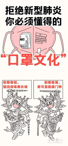 绵竹年画图案被新华社刊发《拒绝新型肺炎,你必须懂得的“口罩文化”》中引用