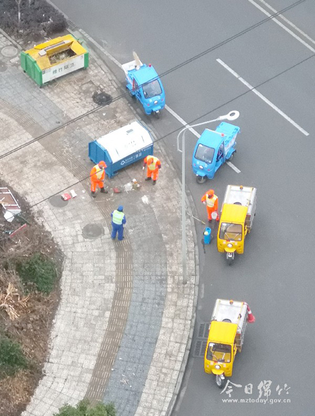 连日来,我市环卫工人和其他战线的同志一样坚守岗位,做好城市环境卫生,为打赢疫情防控阻击战作出自己的贡献。图为2月2日早上,环卫工人在城东新区徐州路转运生活垃圾。