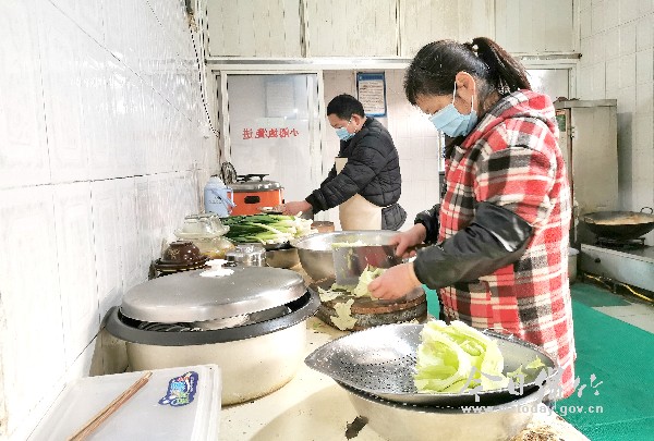 当新型冠状病毒感染的疫情突然来临时,什地镇机关食堂的郭志丰做了一件事:他带着腊月二十九出院的妻子搬到单位,俩口子当起“火头军”,为前方坚守的基层干部、志愿者每天做好可好的饭菜,以保证他们能有更多的精力投入到防疫一线中去。 61岁的郭志丰和妻子苟红英已经在岗位上坚守了十多天。他们每天五点起床要忙到晚上十点过。由于妻子刚做了胆囊切除手术,腊月二十九才出院,伤口还未痊愈,大多数的重活累活便压在了郭志丰身上。郭志丰不仅每天要做五六十个人的饭菜,还要负责食堂内所有的消毒工作。 2月5日下午4点过,天空飘着小雨,记者来到什地镇机关食堂见到了正在忙碌的老郭俩口子。郭志丰对就餐区消完毒后,赶紧到后厨准备,苟红英则在清洗间里择菜、洗菜、准备配菜,在刺骨的冷水中泡久了,她的双手已变得通红。手术伤口虽隐隐发疼,但苟红英依然坚持把所有准备工作做完后,才起身去抱了杯热水暖暖身子。 “老郭担心我身体遭不住,想找个打下手的,但现在特殊时期我想想还是算了,我俩辛苦点,没啥。”苟红英坦言,现在镇上所有餐馆全部暂停营业,志愿者和卡点检查员都会来机关食堂就餐,就餐人数激增,工作量翻了一番。 为了做好后勤保障服务,老郭夫妻俩不仅每天变着花样给大家做饭菜,还想法设法为大家做好服务。大部分工作人员时刻守在一线,吃饭没个准点,为了保证所有人都能吃上热乎的饭菜,不嫌麻烦的老郭挨个给大家开小灶。受疫情影响,市场上的蔬菜质量参差不齐,贴心的老郭每天抽空回家采摘些新鲜的蔬菜,免费做给大家吃。 “郭叔他们太贴心了,前两天我下乡回来错过了饭点,他立即放下手中的活,帮我下了碗面。”机关工作人员胡裕敏说,大部分人都受到过“特殊关照”,大家都非常喜欢这对“火头军”。 “我也不懂啥大道理,只是想尽心尽力做好每天的饭菜,让一线人员吃得放心,才更有力气干好工作!”郭志丰笑道。