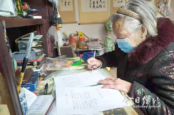 本刊消息 “新冠肺炎如虎狼,张牙舞爪来的忙,无形无影把人害,全国上下来抵抗,葵花朵朵向太阳,革命人儿心向党,千辛万苦齐努力,为治肺疾献力量,白衣战士多劳累,日夜战斗病区上……”记者见到徐万凤老人时,她正在教曾外孙女读这首自己写给奋战在疫情一线战士们的打油诗。 徐万凤是什地镇共和村4组的村民,今年82岁,四世同堂,生活幸福。近期,疫情牵动着全国人民的心,社会各界人士纷纷通过不同的方式支援疫情防控工作,徐万凤想向这些战士表示敬意,于是便创作出了打油诗,向奋战在疫情一线的抗疫战士加油助威。 “我在电视上看到很多工作人员,为了抗击疫情昼夜奔忙,医院的白衣战士也日夜辛劳,要不是年纪大了,我也会报名参加抗疫志愿服务,真心感谢他们日夜守护大家的健康。”徐万凤表示,虽然自己不能亲自上“战场”,但也积极动员家里的年轻人加入到抗疫的队伍中,孙子吉杨受其影响,已经早早报名到村上当起了志愿者。 徐万凤老人告诉记者,自己还会创作更多的作品献给一线抗击疫情的战士们,以另一种方式为疫情防控出力。