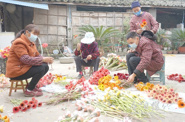 昨日,“今日绵竹”微信公众号《绵竹花农鲜花滞销,爱花的你也许能帮上忙!》一文刊发后,受到众多网友转发和关注,很多市民纷纷向花农伸出援助之手。2月26日上午,花农王明华接到3000余朵非洲菊的电话订单,还有部分热心市民担心配送问题,专程找到王明华家现场购买。截至26日11点,已有近5000朵鲜花或正在配送的路上,或已成为市民家中的漂亮点缀。 订单如雪片 花农展笑颜 26日上午,记者来到富新镇三合村15组花农王明华家的小院,看见院子里摆满了刚刚采摘下来的非洲菊,红的、橙的、黄的、粉的,五颜六色、姹紫嫣红,春天的气息扑面而来。王明华和妻子来回穿梭忙碌,工人们正忙着将精心挑选的花朵扎束包装,院子里不时传来大家的笑声。 “谢谢你们,真的太感谢了!这些漂亮的鲜花终于有了买家。”昨天晚上陆续而来的电话订单拂去多日的阴霾,王明华终于喜笑颜开。工人们凌晨5点就赶到花棚开始劳作,与往日沉闷的氛围不同,今天每个人脸上都是明媚的笑容。订单猛增,人手不足,王明华的女儿也打早赶回家接单、配送,周围邻居也赶来帮忙扎束。 现场购买鲜花 感受春日气息 除了电话订单,陆续有市民辗转找到王明华家现场购买。“看到‘今日绵竹’微信推文,我就想来买些花回家插上,妆点一下家里。”担心花农不方便配送,杨女士和朋友专程从绵竹市区赶来,满院子的鲜花让她挑花了眼。“都好看,我更喜欢单色的,朋友喜欢搭配好的五颜六色的。”杨女士说,疫情防控的特殊时期,天天呆在家里有些沉闷,把盛开的鲜花带回家,让家人感受春天的气息,有一个好心情。通过视频连线挑选,杨女士加上帮朋友买的,大概买了160枝非洲菊。 “清早采摘的新鲜,插在花瓶里可以保存5到7天左右,各种颜色都配一些更好看。”采摘、扎束,王明华从凌晨5点就没休息过,脸上的笑容也没停过。以往他都是为花店配送单色花朵,今天他第一次尝试色彩搭配,每一束花扎好后,他都会左看右看,反复调整,尽力配出好看的花束,他希望所有的顾客都和他一样,看到鲜花心情愉悦。 “昨晚就有很多电话咨询下订单的。”王明华的女儿王永菊告诉记者,截至26日上午11点,已接到大约3400朵非洲菊的订单,从上午9点,就陆续有个人和单位辗转找到花棚,现场卖出1000多朵非洲菊。由于配送能力有限,他们正在与后面的订单客户协商,打算在第二天配送。 |