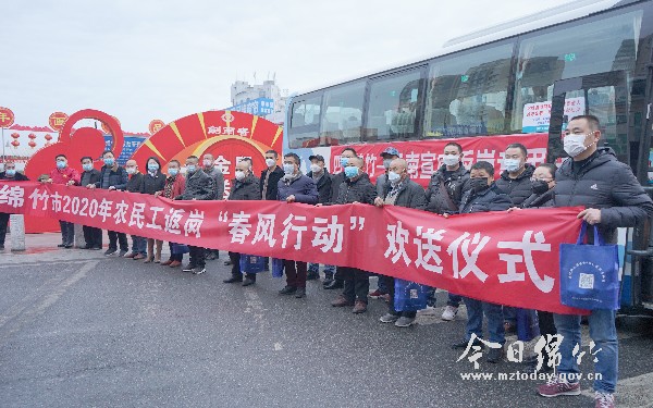 本刊消息 2月28日早上7点50分,我市28名农民工带着对美好生活的向往,在中心广场坐上前往云南省曲靖市宣威市顺亿矿业有限公司的专车。为他们送行的市人社局、德阳鼎达集团工作人员反复叮嘱,一定要注意安全,做好个人防护。 据了解,宣威市顺亿矿业有限公司是德阳鼎达集团参股的一家矿业公司,当前复工复产迫在眉睫,为让农民工安全、顺利返工,德阳鼎达集团联系了专车为他们提供点对点、一站式的服务。 市人社局为护航农民工返岗,为他们提供了免费健康服务,并向每一位农民工提供了健康险和意外险保障。 据了解,当天鼎达集团还准备了两辆指挥车和一辆物资保障车一路随行,除向农民工提供热水、消毒液等物品外,随行的医护人员还将为他们提供医疗服务和应急药品。