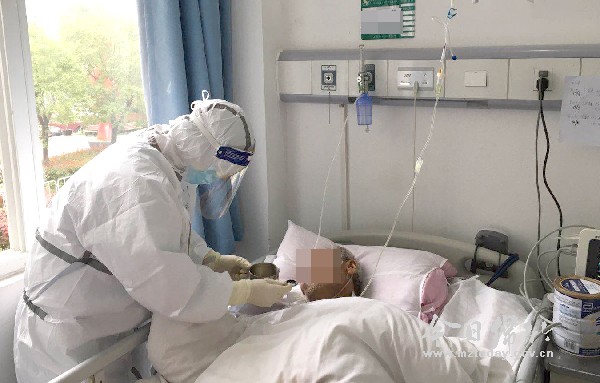 3月16日,结束了在武昌医院的最后一个轮值班,我回到了驻地酒店休整待命。3月17日起,武昌医院的所有新冠肺炎患者都将迁往最后十家新冠肺炎定点医院集中收治,我也将被重新分配到新的定点医院工作。在武昌医院的这些天,我看到了武汉本地医生的积极向上、无所畏惧,也看到了患者在疾病面前的乐观坚强和感恩之情。他们,比武大的樱花还美。 让我印象深刻的是一位73岁的脑梗死病人。由于全身瘫痪,老人不能言语更无法自主进食,最近他状况不好,已经好几天没吃东西了。“爷爷你得努力吃身体才有力气,才能快点康复见到家里人啊!”每次上班时,我都会劝劝他。见老人有些想吃东西了,我赶紧拿起牛奶,一边轻轻挤压牛奶盒帮助进食,一边轻声鼓励着,没一会他就喝下了150毫升牛奶。 午饭时间快到了,我又像哄小孩子一样,哄着老人一勺一勺地吃了好些营养粉。这时,他突然努力抬起手臂想要握住我的手,眼神里充满了感激。“爷爷你快点好起来,你看这次我们来武汉,都没有机会逛逛黄鹤楼,看看武大的樱花。下次我们再来,你带我们去好不好?”我本想宽慰鼓励老人,让他保持乐观心态,积极配合治疗。谁知老人听了以后,努力地不停点头,怕我不明白他的意思,还使劲地眨着眼睛。见此情形,我的眼泪顿时夺眶而出。 在武汉的这些天,我也有过焦虑不安,但看到患者们那一双双渴望生命的眼睛,看到他们一天天好起来时,我知道这一切的付出都是值得的。 (图片由绵竹医疗队提供)