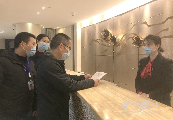 柜台上摆放着酒精、84消毒液、测温枪,门上张贴着“请佩戴口罩”、“本店今日已消毒”等提醒标语,每位进出的客人需要体温检测登记、出示身份证和健康码。这是日前记者跟随市商务和经济局工作人员在一家已经复工营业的酒店所见的景象。 据悉,我市共有酒店、宾馆188家,目前已有170余家恢复营业,复工率达90%。为全力筑牢住宿行业安全监管防线,保障市民放心入住,连日来,市商务和经济局对已经恢复营业的酒店、宾馆进行了督查,确保全市住宿行业安全有序恢复营业的同时做好疫情防控工作。 3月18日上午10点,记者在城市便捷酒店门口看到,佩戴着口罩和手套的工作人员为进入酒店的客人测量体温,并引导他们进行信息登记。走进酒店,员工正在对大厅、房间进行全面清洁消毒。市商务和经济局工作人员详细了解了酒店相关防疫措施,并叮嘱工作人员一旦发现体温异常或红色健康码的客人立即上报。 来到岷山饭店,“预防新冠病毒从我做起”的提醒标牌十分醒目。“尽管客人不多,但是疫情防控这根弦没有丝毫松懈。”据工作人员介绍,该酒店于3月16日恢复营业,目前暂不接待餐饮。为确保客人及员工身体健康,酒店对每个员工及家庭建立健康卡,每天填报身体健康状况以及行程路线。随着酒店接待量回升,工作人员对各区域尤其是公共区域加大清洁消毒频率。同时,酒店每日为客人提供免洗消毒液等防疫防护用品,并安排员工上门送早餐。 采访中,记者了解到,随着我市住宿行业陆续恢复营业,市商务和经济局工作人员每天深入酒店、宾馆检查疫情防控措施和日常制度落实情况,对于存在的问题及时提醒整改,并积极协调解决复工复产中遇到的问题。