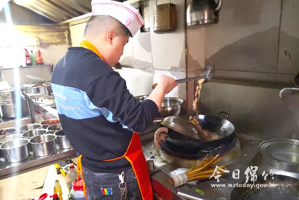 3月23日早上7点,殷海准时起床,洗漱完毕骑上车,直奔自己位于南京大道一段的餐馆。餐馆门前,蔬菜供应商已把他当天需要的蔬菜整齐地摆放在门前。打开店门,殷海便把一袋袋的蔬菜往里搬。当天,是殷海餐馆恢复正常营业的第三天。3月20日,看到德阳市发布全面恢复餐饮服务经营单位正常营业的通知后,殷海按捺不住心中的喜悦:“终于可以开门营业了!” 餐饮业全面恢复营业的消息,殷海从春节后就一直在关注。殷海的餐馆不大,100来平米,摆着十多张大大小小的餐桌,主营家常菜。不一会儿,殷海的合伙人,也是自己的好朋友和两位服务员也来到了餐馆。“小袁,动作利索点,今天天气好,按照前两天的情况,中午前来吃饭的人肯定还是多。锅碗瓢盆、桌椅餐具要严格消毒,不能有半点马虎哈。”“老板,晓得了,这几天一直都是按照这样在做得嘛。”紧接着,殷海拿起体温枪,分别对店里的所有人一一测量了体温,询问了健康状况,然后把这些信息填写在墙上的食品安全信息公示栏里,让顾客都能看到。“目前疫情还没有结束,防疫安全工作做不好,不仅是对消费者不负责,也是搬起石头砸自己的脚……”忙着各自手中的活,殷海说道。 今年31岁的殷海之前也一直在成都、德阳等地的餐饮店里打工。打工时期的殷海人年轻、有钻劲、勤思考,在工作中勤奋学习和钻研烹饪技术,还在同行业的朋友那里取得了不少真经。2017年,决定自己创业的殷海和有着同样想法的好友一拍即合,在南京大道一段租下一个店面,开始了自己的餐饮创业之路。 为了节约成本,殷海和自己的合伙人既是老板,也是厨师。经过前期的苦心经营,餐馆有了不少回头客,生意一直不错。2019年春节临近,因为春节是一年生意最好的时候,殷海提前准备了很多食材,原本盼望着能多挣些钱,谁料新冠肺炎疫情突如其来,与全市其它餐饮行业的同行们一样,殷海响应号召,暂时关门停业。可是,关了门,堆积的食材怎么办?每月的房租、水电气、人工工资从哪里来?为了生计,从正月初二开始,餐馆便利用外卖平台做起了外卖。“外卖期间,生意那叫一个惨!”殷海说,一天最多十多单的生意,500元左右的收入,一月下来,除去必要的开支,还要倒贴不少。“但是,惨也要继续做,一来人不能闲起,二来也是为了生存,现在食材成本高,餐饮经营起来也困难,每月除去必要的开销外,能保持运转就算可以了。” 临近中午,食客陆陆续续前来,殷海再次对正在堂内接待客人的两位服务员提醒道:“安排客人时,一定要注意将客人分散安排就座,并严格限制堂食人数。”两桌客人坐下后,点好菜,服务员把菜单送到了殷海的手上。系上围裙、戴好口罩,“啪”的一声打开灶台开关,熊熊燃烧的红色火苗映红了殷海的额头。掂起炒锅倒上油,殷海又开始忙碌起来。厨房里,一道道美味的佳肴在殷海的不停翻炒中出炉,陆陆续续到来的顾客让殷海又找到了那种久违的感觉……