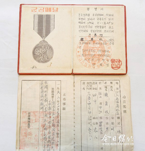 现年90岁的钟发玖是中江人,现居住在汉旺镇集贤社区。他1951年3月参军入伍,同年4月随部队奔赴朝鲜,8月加入中国共产党,曾与黄继光并肩作战,并荣立二等功。虽然年事已高,但回忆起那段在枪林弹雨中浴血奋战的日子,他至今仍然记忆犹新。 瞒着家人 毅然参军 1930年,钟发玖出生在中江县一个贫穷的农民家庭。由于家里姊妹较多,他读了几个月书之后便辍学在家帮父母做农活。21岁那年,他瞒着父母从中江县永泰和平公社一大队七组参军入伍,直到母亲收到他从部队寄回的家书才知道此事。虽然母亲为此哭了好几天,但他从来没有后悔。 1951年4月,入伍短训仅一个月的钟发玖便随部队奔赴朝鲜。那时候的朝鲜战火纷飞,到处都是炸弹坑,前线战事打得异常激烈,伤员不断被转运下来,缺手少脚的伤员随处可见,有的伤员甚至肠子都裸露在外面……看到战友们的受伤和牺牲,志愿军们个个满腔怒火,大家纷纷发誓:不把美帝赶出朝鲜,护卫我们的国界线安全,绝不回国! 与黄继光并肩作战 亲历上甘岭战役 钟发玖参军的那年,与他家距离30多公里的黄继光也从后来的继光公社入伍参军。抗美援朝的时候,他与黄继光是同一个营的战友。 黄继光在15军45师135团二营六连当通讯员,由于战争原因,他俩之前很少往来,只有黄继光送信的时候才会到钟发玖所在地方。钟老回忆道,“当时我们部队要向597.9和537.3高地发起攻击,这里有敌人的碉堡,敌人的火力压得我们抬不起头,要把这个火力点压住,我们才能攻上去。为摧毁敌人的火力点,部队一共组成3个爆破小组,第一爆破组由吴三洋带队,牺牲了;第二爆破组由肖登亮带队,也牺牲了;第三组则是由黄继光带领的爆破小组。他们带上手雷和爆破筒冲向敌人的火力点,连续摧毁敌人几个火力点后,一名战友不幸牺牲,另一名战友身负重伤,黄继光的左臂也被打伤。敌人的照明弹将阵地照得如同白天,几条交叉火力封锁了前进的道路。但黄继光毫无畏惧,他忍着伤痛趁手榴弹爆炸烟雾弥漫的时候抵近了敌中心火力点,连投几枚手雷。” “当时他把手雷用完了并负了伤,只剩下了爆破筒。他继续向敌人的机枪火力点冲去,把爆破筒塞进敌人的机枪孔,敌人从里面把爆破筒推出来,黄继光把手一挥,又将爆破筒塞进敌人的机枪孔,并用胸口堵住敌人的机枪孔,此时爆破筒与敌人的碉堡一起爆炸。我军听到爆炸声,迅速冲上高地,占领了目标。黄继光用胸膛堵住了正在射击的机枪,英勇捐躯了。”钟老说,在黄继光英雄壮举的激励下,部队迅速攻占0号阵地,全歼守敌两个营。 坚守八昼夜 荣膺二等功 在举世闻名的上甘岭战役中,作为火线运输员的钟发玖冒着敌方的炮火,在封锁区内连续运输弹药、物资八个昼夜,在抗美援朝战争胜利后,志愿军总部授予他二等功。回忆起这段峥嵘岁月,他说得最多的一句话就是“电影《上甘岭》中战士们背水、送水被敌人机枪封锁扫射而牺牲并不是虚构的,而是我们的亲身经历。” “那次战役中,美军调集兵力6万余人,大炮300余门,坦克170多辆,出动飞机3000多架次,对志愿军两个连、约3.7平方公里的阵地上,倾泻炮弹190余万发,炸弹5000余枚,战斗激烈程度前所未有,特别是炮兵火力密度,已超过二次大战最高水平。”钟老说,“由于战事紧张,后勤补给经常跟不上。战士们在没有饮用水的情况下,要吃下压缩饼干只能喝尿。而作为火线运输员的我们,白天运输常常会遭到敌机的狂轰乱炸,上级指示我们夜间运输,要不惜一切代价,坚决保障前线的物资需求。当时我只有一个信念,那就是一定要完成任务,一定要取得胜利。正是这样的信念支撑着我,八天八夜几乎未合过眼,借着月光在封锁区内连续运输弹药和物资。” 抗美援朝战争胜利后,由于钟发玖的英勇表现,被志愿军总部授予二等功。1955年,他回到祖国,但抗美援朝的那些峥嵘岁月,却成为老人一辈子最难忘的记忆。2007年,老人回到汉旺镇与儿女同住,他所在的军区和部队先后多次前来看望他,并询问他有什么要求,都被他谢绝了。他说:“当时我们一个连有200多个人,到最后只剩下几个人。比起牺牲在朝鲜的战友,我感到很知足,很幸福,不能给国家添麻烦。”
