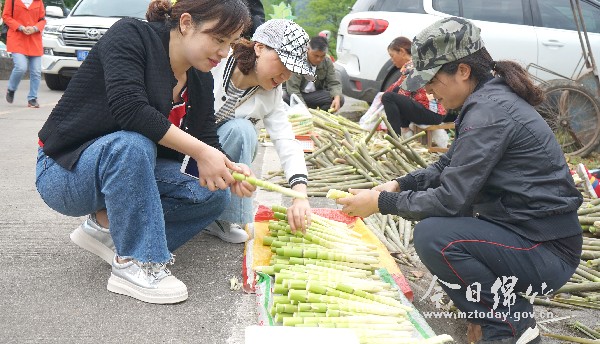 又到一年竹笋成熟季。5月12日,记者从汉旺镇了解到,今年大天池村的鲜竹笋已正式进入采摘旺季,每天都有不少市民去大天池村现场采摘,或到汉旺新镇的宜苑小区进行购买,销售供不应求。 “刘姐,笋子好多钱一斤,给我留10斤。”“马姐,你的笋子都卖完了啊,明天还上山掰笋子不?”5月12日下午,记者在位于汉旺新镇的天池宜苑小区门口看到,几十米长的街道只有三五家卖新鲜竹笋的村民,而专程赶到这里购买新鲜竹笋的市民却络绎不绝。不少市民看到老板刚刚剥出来的笋子被“一抢而光”,担心自己购买不到跑了“空趟子”,便亲自上阵剥起笋子来。大天池村村民马正琼告诉记者,他们家种了3亩多地的早竹笋,以前隔天就能掰几百斤“毛壳壳”,但今年因为天气干旱,鲜竹笋产量下降,平均价格为5—6元/斤,每斤价格比去年贵一块钱左右。 “天池早竹笋鲜嫩可口名声在外,不少老百姓家里的竹笋都被提前预订了。”专程从绵竹赶到汉旺购买笋子的周玉书告诉记者,他专门去大天池村买了50斤笋子,准备给朋友送一些,自己家里再晾晒一些。 据了解,汉旺镇天池辖区早竹笋种植面积达1万亩以上。暮春初夏时节,正是早竹笋收获的季节,大天池村的村民每天天不亮便上山采摘新鲜竹笋。从5月初到6月上旬,是吃天池鲜竹笋的最好时节。