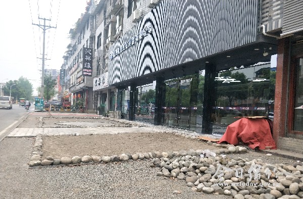 近日,有市民爆料,安顺路海鹰文化传播有限公司在店面门口施工修建花园,导致行人无路可走,只能与车辆共用机动车道,造成不小的安全隐患。 5月15日上午,记者沿安顺路步行至海鹰文化公司,只见该段道路为两车道,路面较为狭窄,路边餐饮店铺云集,路上车来车往川流不息。海鹰文化公司店门紧闭,店面前的人行道上铺满了细碎的石子,有水泥和较大的石头堆砌一起,规划出圆、半圆等形状。 “文化公司所用店面属于村民的自建房。”附近商铺的工作人员介绍,该段道路原本规划有较宽的人行道,因周边餐饮店铺众多,中午和晚上不时有车辆停放在两侧的人行道上。海鹰文化公司前不久进行装修,估计担心大量车辆停在店面前影响公司形象,大约在4月中旬左右,公司将店面前的人行道围了起来,准备建景观花园。 据了解,虽然该段道路东侧人行道未铺设专门的地砖,但商家和行人默认了双车道旁稍微抬高的路面属于人行道。商铺在此建景观花园,导致行人不得不与车辆共用机动车道,特别到了晚上,周边食客云集,车流增多,不仅容易引起道路拥堵,还存在极大的安全隐患。有附近商铺工作人员表示,因附近餐馆众多,而周边停车位较少,不少商铺为了方便食客,默许大家暂时将车辆停放于此,只要有序停放,并不影响店面正常营业,而该公司在人行道上圈地搞建设的行为实在太“霸道”。 人行道上“圈地”的行为在该段道路上并不是个例。一路上,记者发现多家店铺在店面口摆放绿植,甚至有商家围起木栅栏,种上绿植,竖起太阳伞,隔出露天卡座,一眼看去景观别致,确实漂亮,不过原本的路没有了,过往行人只得与车辆“抢道”,非常危险。周围住户及部分商铺工作人员希望相关部门对此管一管,让大家有一个安全的通行作环境。