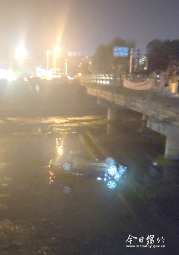 轿车深夜“飞”入河中 所幸司机及乘客及时获救
