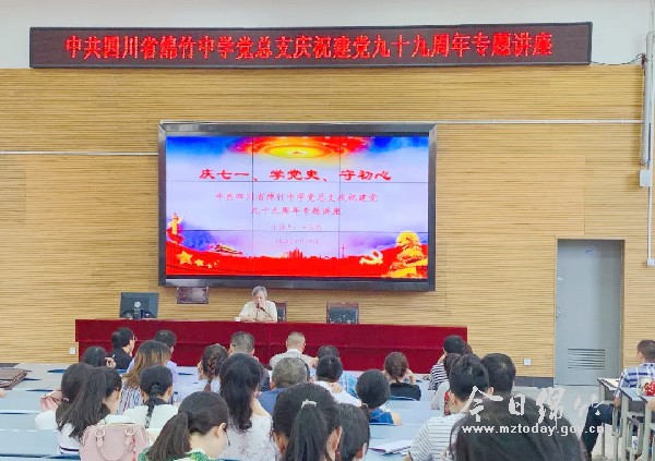 绵竹中学:6月29日,绵竹中学党总支举办了庆祝建党九十九周年专题讲座,特邀原市委党史研究室主任王友贵给全校党员上了一堂题为“庆七一、学党史、守初心”的党课。 王友贵回顾了绵竹地方党史的峥嵘岁月,重温了中国共产党九十九年来的风雨历程,进一步激发了该校党员教师爱党爱国的情怀。 王平 责编:李莲