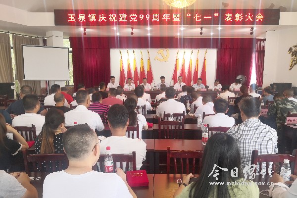 玉泉镇:6月30日上午,玉泉镇召开庆祝建党99周年暨“七一”表彰大会。 会议对该镇先进基层党组织、优秀党务工作者和优秀共产党员代表进行了表彰;全体党员重温了入党誓词;镇党委书记陈波为全镇党员上了一堂主题为“充分发挥党员先锋模范作用——用行动践行初心使命”的专题党课。王虹 责编:李莲