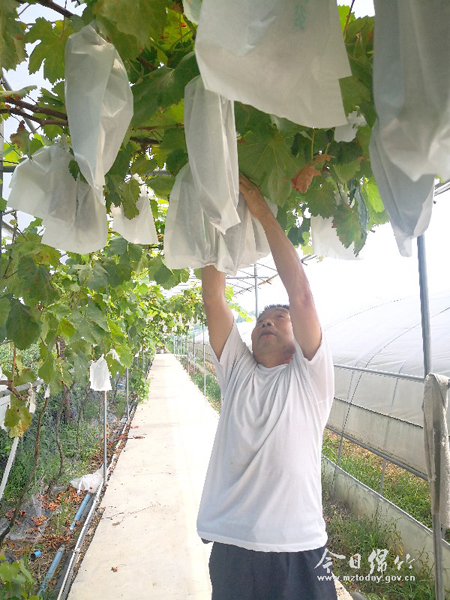 6月30日,艳阳高照,走进玉泉镇永宁村壹龙果园,满眼绿意扑面而来,一颗颗桃子在阳光下散发着诱人的色泽和果香。果园主人龙期述和父亲正在大棚里为一串串葡萄套袋,脸上的汗水掩饰不住即将丰收的喜悦。“前几天刚刚把蓝莓采摘完,这几天就忙着给葡萄套袋疏果。”见记者到来,龙期述摘下几颗蓝莓让记者品尝,伴随着沁甜的果香,龙期述讲起了他创建果园的坎坷之路。 返乡创业种果树 2013年之前,龙期述一直在外打工。2013年,源于对水果的喜爱,他决定结束在外的打工生活回家种水果。通过前期的市场考察,他把目光锁定在种植树莓上。2014年,龙期述在家乡永宁村流转了三亩多地开始试种起树莓,令他没想到的是,树莓虽然结了果,但口感很差,只适合用来深加工。就这样,盲目的跟种,导致龙期述第一次种植以失败告终。 随后他再次外出考察。在成都的一家蓝莓博览园参观时,龙期述了解到蓝莓的产量和效益都非常可观,管理上要求也不是特别高,他决定改种蓝莓。2015年,龙期述引进蓝莓种苗种了5亩多地的蓝莓。虽说对种植水果有着满腔热情,但实际操作起来却并不容易。因为缺乏技术,龙期述的蓝莓树不仅长不高,而且果实也很小。 一波三折终成功 连续两次失败,让龙期述这个水果种植的“门外汉”意识到,要种好水果技术是关键。随后,他采取走出去请进来的方式,先到蓝莓博览园跟老师拜师学艺,再把老师请到田间进行手把手指导。2018年,通过改良土壤、更换品种,龙期述重新试种了1亩多地的蓝莓。这一次,功夫不负有心人,改种后的蓝莓在今年迎来了初挂果,亩产达到700斤,而且结出的蓝莓品质很好,销售也很火爆。 通过种植蓝莓,龙期述逐渐琢磨出了一套水果种植经验,在爱上水果种植的同时,他也有了更多的想法。他觉得种植单一的水果,不仅利润低,抗风险能力也差,加之随着乡村游、采摘游的兴起,龙期述决定增加水果品种,扩大种植规模,打造复合型果园。随后他把种植面积扩大到50亩,又陆续种植了葡萄、火龙果、桃子、李子、车厘子、山楂、柠檬等水果。 一年四季能手摘 虽然在种植过程中,龙期述不时会遇到疏果、施肥、果树修剪等诸多问题,但通过他的虚心请教、总结摸索和勤劳的双手,水果种植慢慢走上了正轨。为了种出高品质的水果,龙期述始终坚持施用农家肥和生物复合肥,实行物理防治和生物防治相结合,全程按照自然规律进行栽培。从今年开始,龙期述果园里的各种果树陆续挂果,看着果园一年年变美,各种水果挂满枝头,他觉得前期的所有付出都是值得的。6年的汗水,当初从水果种植零开始的壹龙果园,如今已经成为一个有蓝莓、葡萄、桃子、山楂、柠檬等20多个水果品种的采摘庄园。在果园不断发展壮大的同时,龙期述还解决了周边20多名村民务工,让乡亲们在家门口实现就业增收。 谈到未来的发展,龙期述信心满满。他打算继续扩大果园种植规模,增加配套产业和设施,让消费者在果园一年四季都能采摘到新鲜水果。