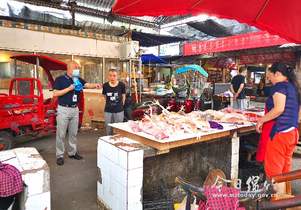 日前,市市场监管局接到群众投诉举报称,紫岩市场内仍然有经营户在宰杀活禽,商铺内粪便和垃圾满地,散发出阵阵恶臭,引起附近商户和过往市民不满。7月13日,市市场监管局决定突袭整治紫岩市场,对活禽交易的违法行为“零容忍”,发现一宗、查处一宗,切实守护市民群众“舌尖上的安全”。 当天上午9点,记者在紫岩市场看到,两家摊主正在宰杀和售卖活禽,档台上都摆放着几只刚宰杀不久、已去除内脏的鸡,档台后的铁笼里则装有大大小小10余只活鸡、活鸭、鸽子、鹅等活禽。地面垃圾随处可见,未及时处理的动物内脏和血水四处横流,散发出阵阵恶臭。 “根据疫情防控的要求,所有活禽一律不准在农贸市场交易宰杀。”面对经营者的不理解、不配合,市市场监管局执法人员耐心解释政策,分析其中利弊,督促经营户立即将店内的活禽和相关设施设备全部搬离,劝导他们整改到位,按照规定进行贩卖,并组织人员在市场内张贴停止活禽交易和禁止贩卖野生动物的公告。 据了解,今年2月5日,我市全面关闭了农贸市场内的活禽宰杀点,启动了应急活禽集中屠宰、集中检疫、“白条禽”凭证上市等工作。目前,我市活禽交易实行定点宰杀、严格检疫等制度,在保证新鲜度的同时有效预防和控制传染病的发生和传播。 市市场监管局工作人员朱伟表示,疫情防控正进入常态化阶段,农贸市场活禽交易问题具有极强的顽固性,反弹情况严重。“作为职能部门,我们将加强农贸市场日常监督检查力度,坚持明查与暗访相结合,坚持疏导与打击相结合,坚持禁售禁杀与定点屠宰相结合,巩固整治效果,防止活禽宰杀再次死灰复燃。”