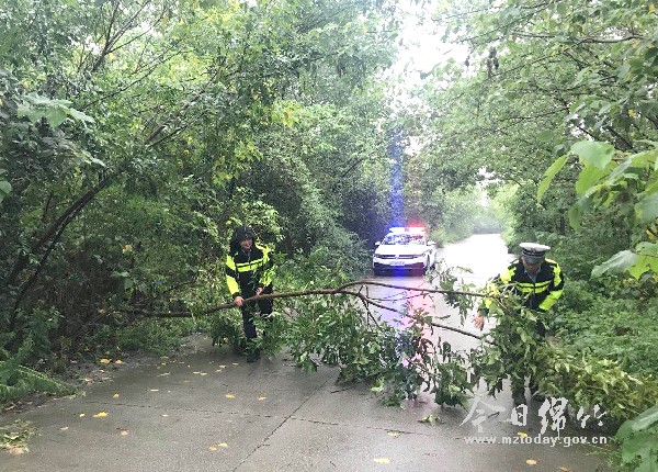大风刮断树枝交通遇阻 警民合力清理确保畅通