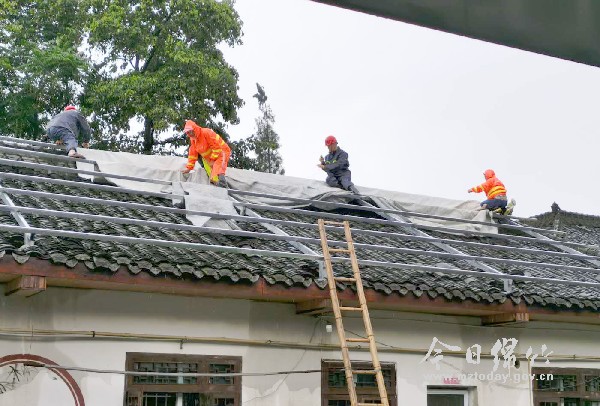 8月12日早上6点,暴雨不断,九龙镇清泉村民兵连长、地灾监测员陈绍坤被闹钟响铃叫醒。他揉了揉微睁的眼睛,迅速穿上雨衣,带上工具,朝石马沟地灾隐患点赶去。到达现场后,陈绍坤顾不上脚下打滑,一手抓紧树干,一手掏起地上的泥土仔细观察。“要看土壤含水量有多少,一旦饱和,极易引发泥石流。”见土壤变化不大,陈绍坤悬着的心才慢慢放下。此时,他的衣服已被雨水浸湿,但来不及换下,他又投入紧张忙碌的抢险工作中…… 解决群众燃眉之急 8月11日上午9点30分,九龙镇暴雨倾盆、雷鸣电闪,正在无隐寺帮忙转移群众的陈绍坤接到村民陈万玉的求助电话,来不及将涌入雨靴中的水倒出来,他便驾车迅速赶往现场。在清泉村6组,由于降雨量太大,河水漫过河堤涌入路面流淌至陈万玉的家中。此时,她一边将贵重家电搬至高处,一边在院子内疏掏下水道的泥沙。见状,陈绍坤立即挥动锹铲装砂石,并在公路一旁再堆放沙石袋。河水停止蔓延,陈大姐终于长舒了一口气。 “坤哥,我家里漏雨,家具全被淋湿了。”来不急喝水休息,刚忙完的陈绍坤与其他几名地灾监测员赶紧来到清泉村5组龚思燕的家中。最近几天龚大姐正在翻修屋顶,准备加盖树脂瓦,谁知暴雨突降,施工方停止作业,导致雨水直接降至她的家中,积水已至脚踝。见陈绍坤几人匆忙赶来,龚大姐立即上前说明情况。 此时,暴雨越来越大,陈绍坤找来梯子和篷布,与其他五名地灾监测员爬上屋顶。担心将其它瓦片踩坏,他每走一步都十分小心。因雨靴打滑,陈绍坤险些摔下去,但他顾不上自身危险,赶紧将篷布展开并固定住。虽穿着雨衣,但几人的头发早已被雨水淋湿,一缕一缕地黏在额前,顺着滑下的雨水让他们几乎睁不开眼。紧急处置结束后,已是下午2点。龚大姐紧皱的眉头终于一点点舒展开来。 耐心劝说村民撤离 当天下午2点,在10组村民黄大哥的家中,陈绍坤正晓之以理动之以情劝说几人转移。“我们不想走,去安置点不方便。”前几年,黄大哥在建筑工地从高处摔下导致脊椎受伤瘫痪在床,失去了生活自理能力,家里的一切都靠年迈的父母照料。虽劝说了许久,三人还是不同意转移到安置点。考虑到实际情况,陈绍坤与镇村干部商量后,决定暂时将黄大哥一家安置在镇上的敬老院,由院内的工作人员暂为照顾。“真的太感谢你们为我们着想了。”面对感谢,陈绍坤说:“自己是党员,为大家服务是应该的。” 当天晚上9点,九龙镇村委会集中安置点灯火通明,镇、村干部在房间忙着铺设棉被、凉席等,尽可能给受灾群众提供舒适的居住环境。“你们别担心,我们一会还要去巡逻,不会给小偷有机可乘。”此时,陈绍坤正在为转移群众发放方便面、矿泉水等应急物资,得知大家的担忧后,他赶紧出声安抚。 8月12凌晨1点,陈绍坤拖着疲惫的身体回到家中时,年迈的父母已经入睡。见厨房摆着不少瓢盆接水,他才知道自家屋顶也在漏雨。“今天太忙了,顾不上家里。”一天下来,陈绍坤双腿双手被水泡得发白,但所有受暴雨、洪水威胁的群众都已安全转移,他觉得自己做的这一切都是值得的。 (图由九龙镇提供,左二为陈绍坤)